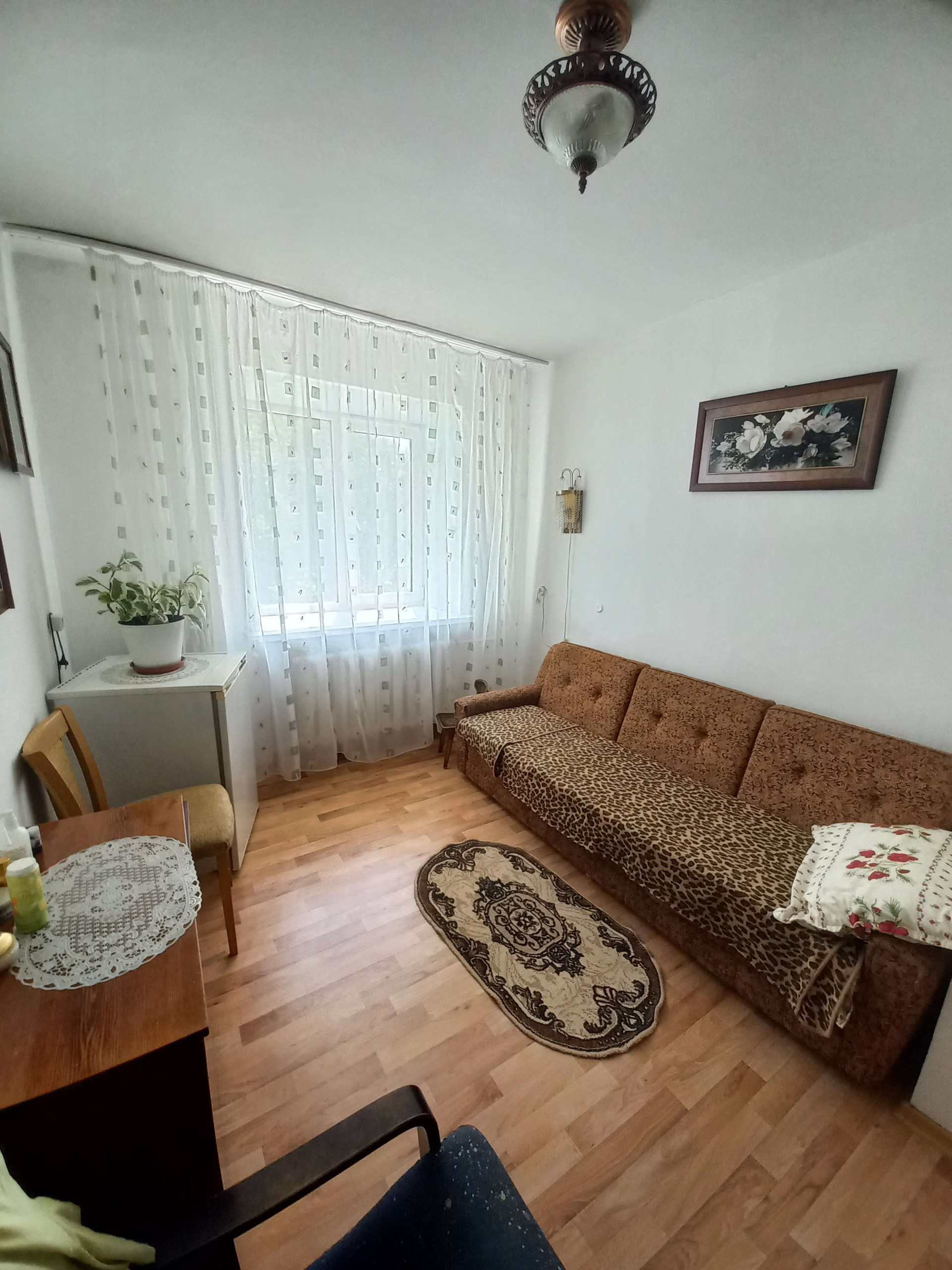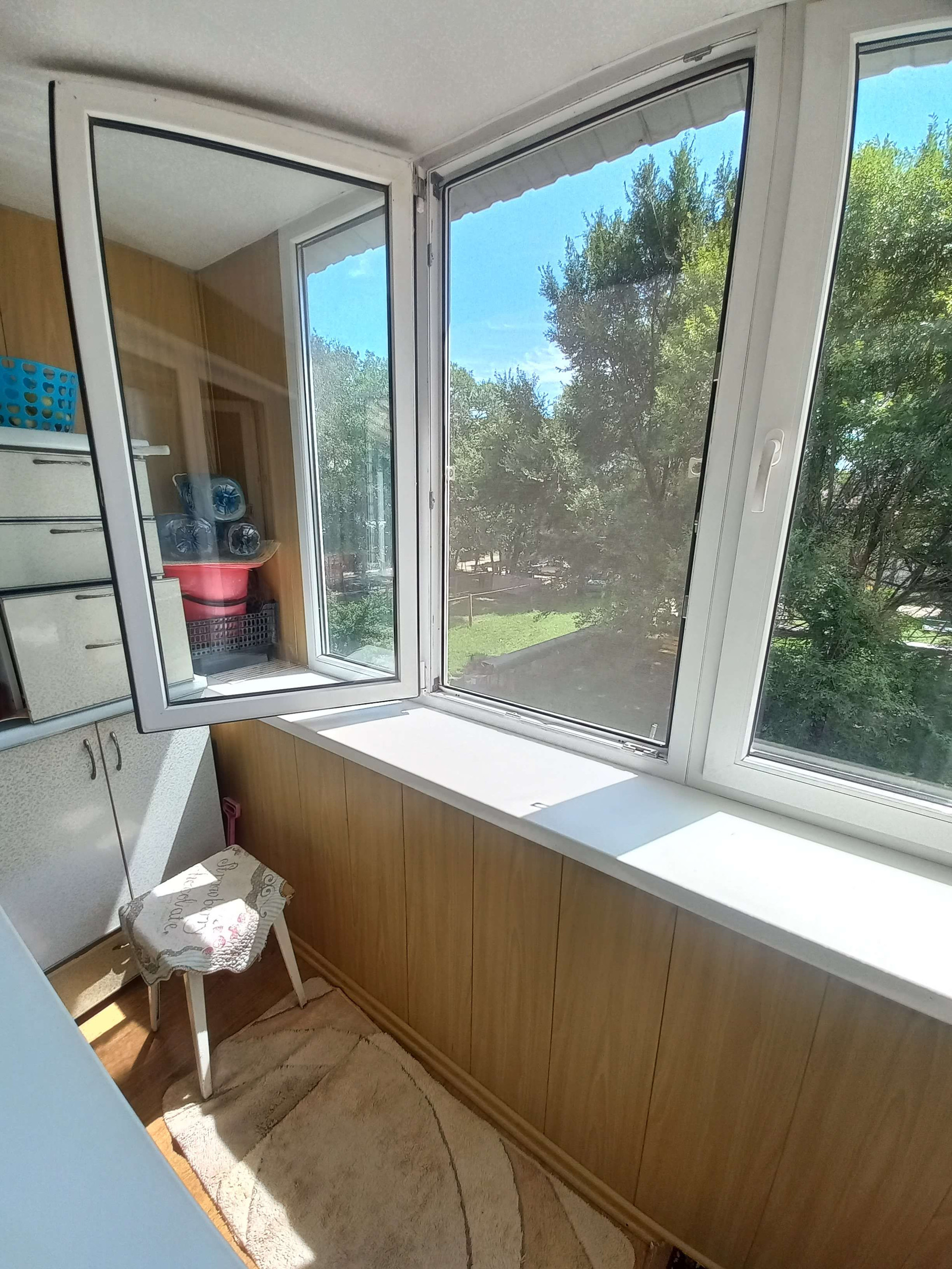 * Окна пластиковые, на полу линолеум, ровные стены, потолки выровнены.