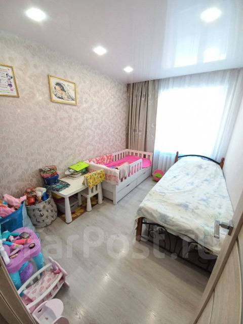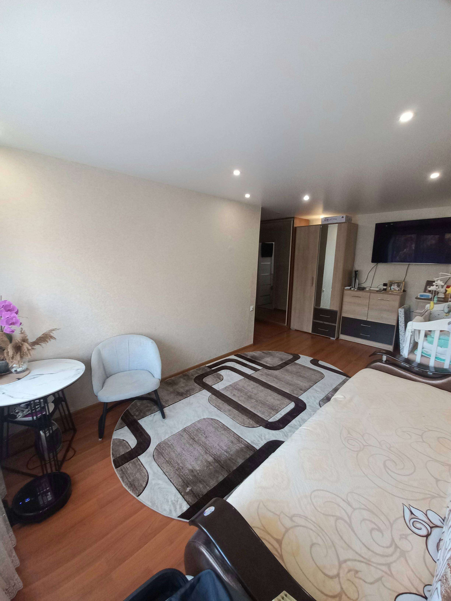 • В квартире сделан хороший ремонт из качественных строительных материалов: на полу ламинат, ванная комната отделана кафелем, установлен тёплый пол, окна пластиковые, межкомнатные двери, потолки натяжные, установлены софиты.