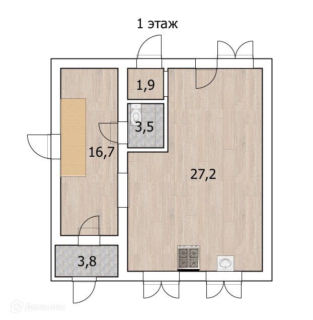 Жилая площадь 60.5 м2