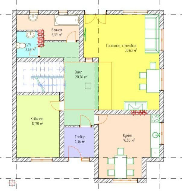 ✅ На первом этаже просторная гостиная, холл, кухня, кабинет, раздельный санузел, прихожая.