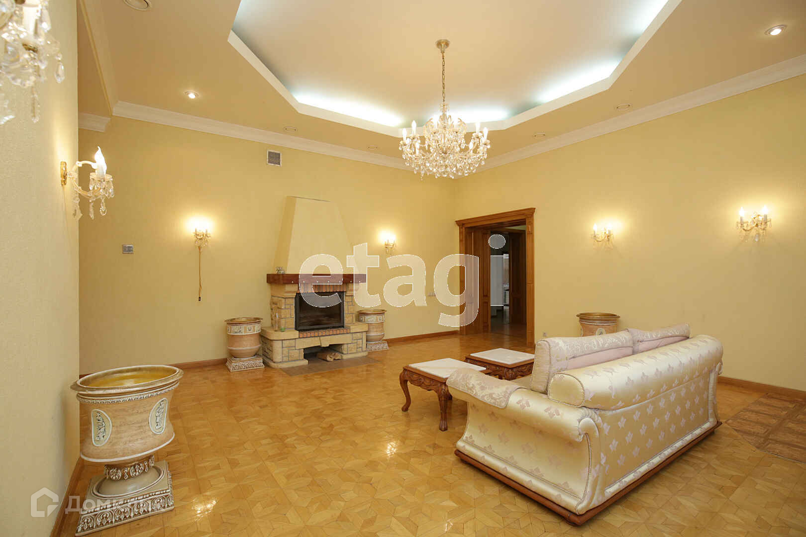 В самом доме высокие потолки (выше 3-х метров), огромный зал с настоящим камином, большая кухня-гостиная, на кухне качественный гарнитур с барной стойкой, так же прямо из дома выход на плавательный бассейн и дровяную баню, два санузла.