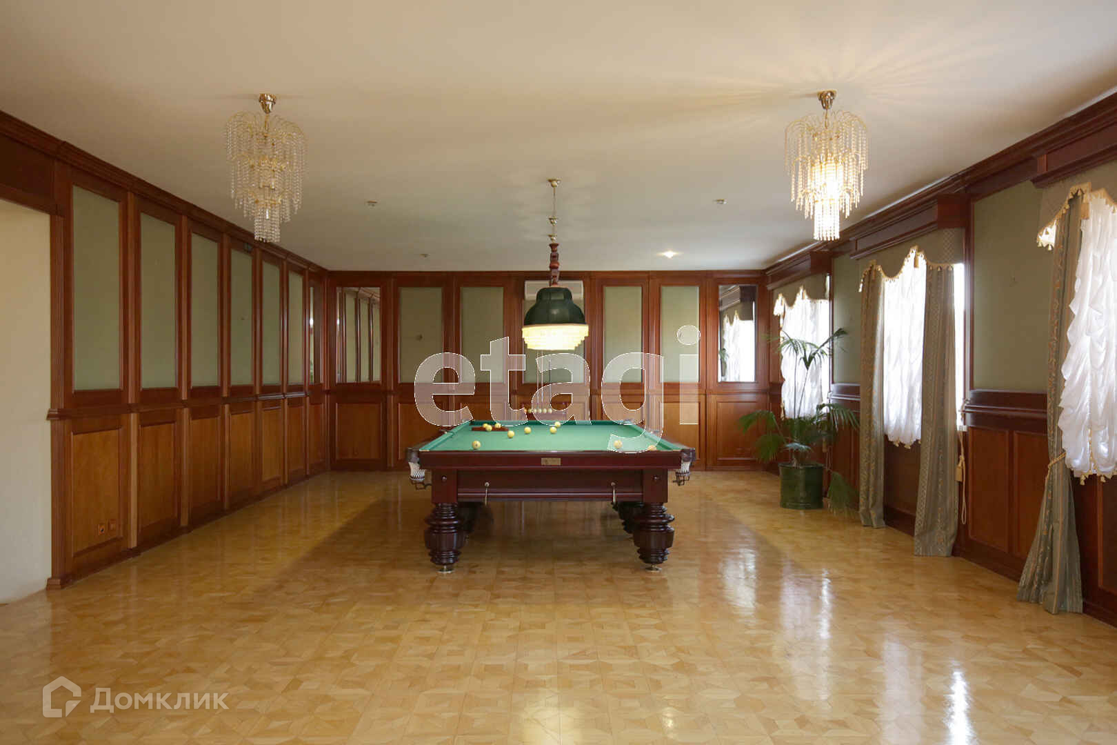На втором этаже: большая бильярдная со стандартным столом (размер 12) так же вся подсветка и атрибутика для бильярда остается, две спальни(в каждой свой санузел) + небольшой кабине.