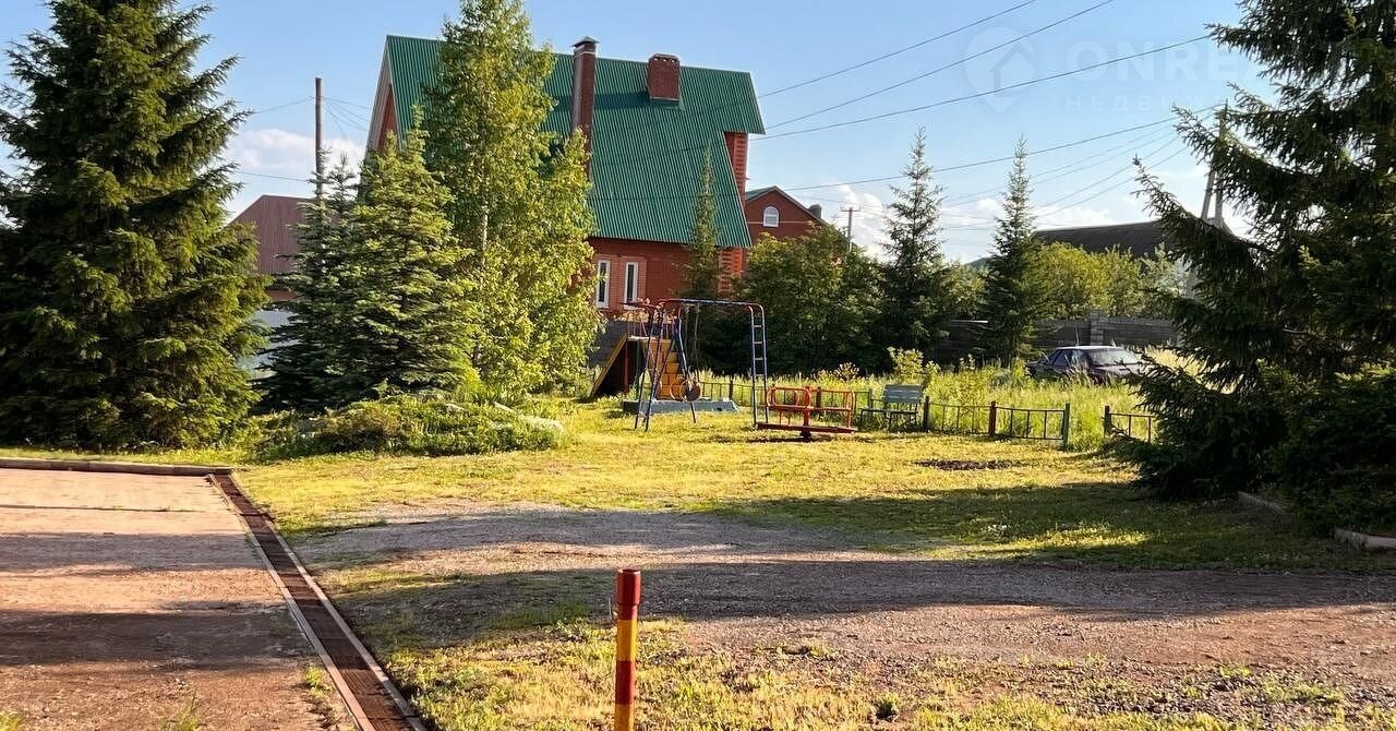 Тупиковый заезд предназначен для пяти домов и оснащён детской игровой площадкой и еловой рощей. Высокое расположение участка открывает шикарный вид на лес, озеро и город Уфу.