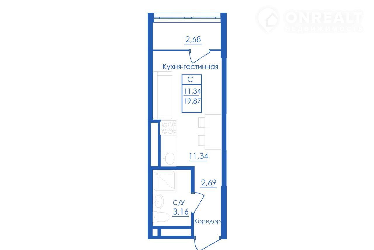 Общая площадь 19.9 м2