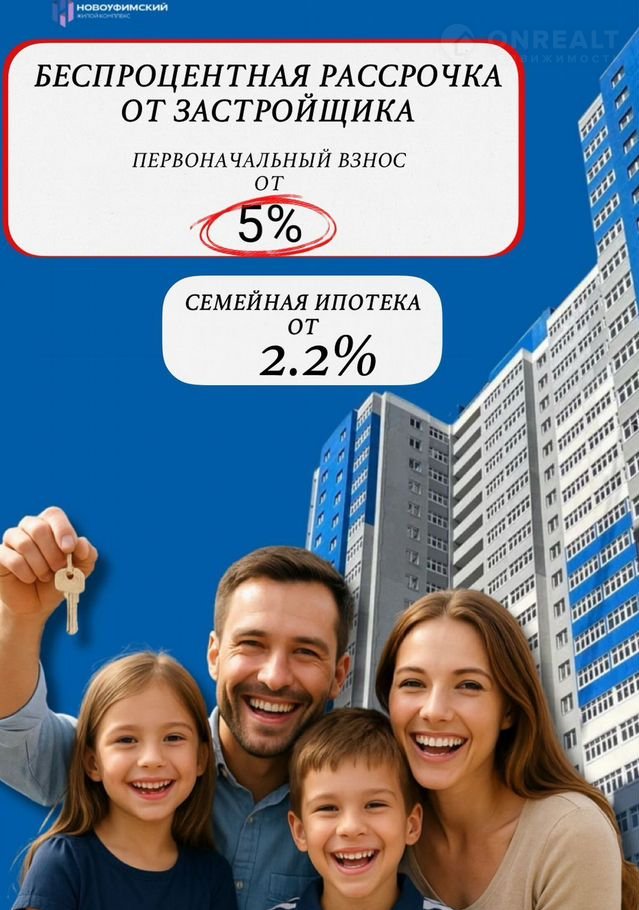 3) Рассрочка без % на квартиры в ЖК «Новоуфимский» выдается до окончания строительства с первоначальным взносом не менее 10% от стоимости жилья.