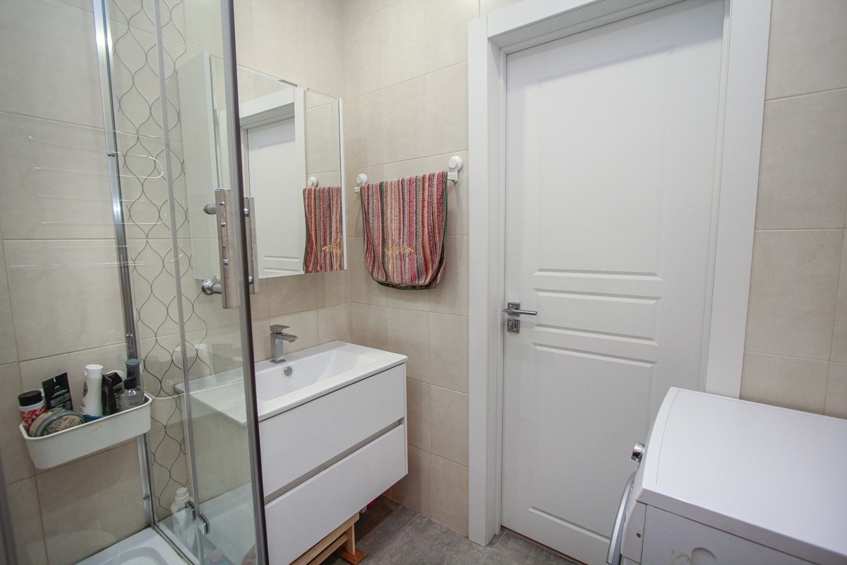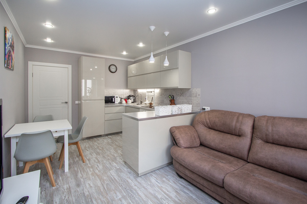 Площадь: общая – 42 кв.м., жилая –13,5 кв.м., кухня-гостиная – 16 кв.м, с/у совмещен, имеется лоджия (застеклена, с выходом из гостиной), просторный холл -8 м.