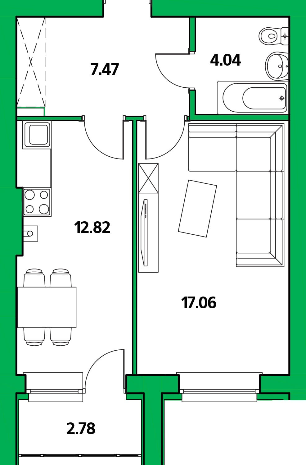 Продается 1-комнатная квартира 44.17 м2 в новостройке от застройщика.