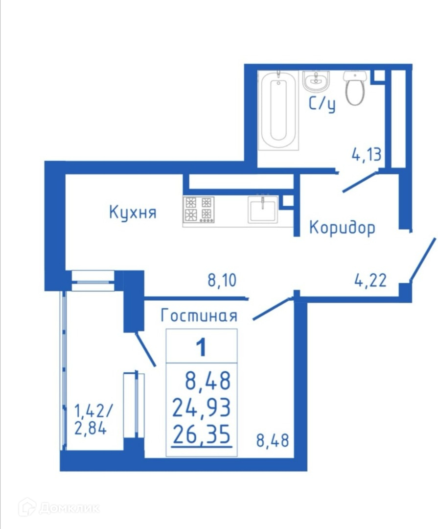 Общая площадь 26.35 м2