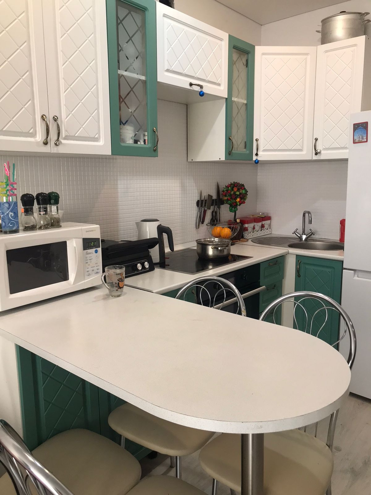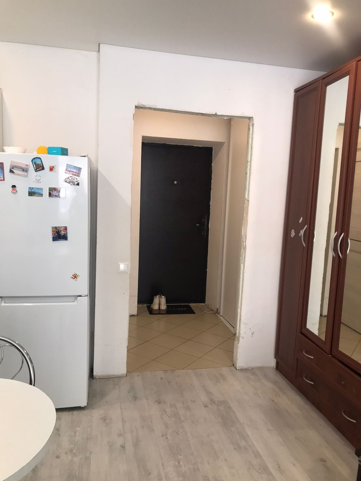 В квартире выполнен хорошо ремонт: натяжные потолки, на полу ламинат, в коридоре на полу кафель, сан узел выложен плиткой, кухонный гарнитур в современных тонах, практичный и удобный. В коридоре вместительный встроенный шкаф под гардероб.