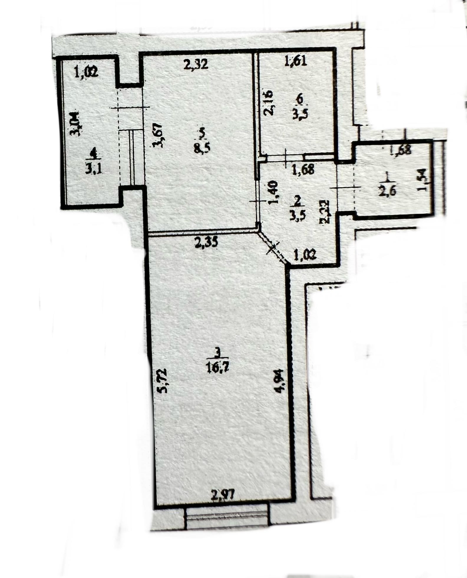Жилая площадь 16.7 м2
