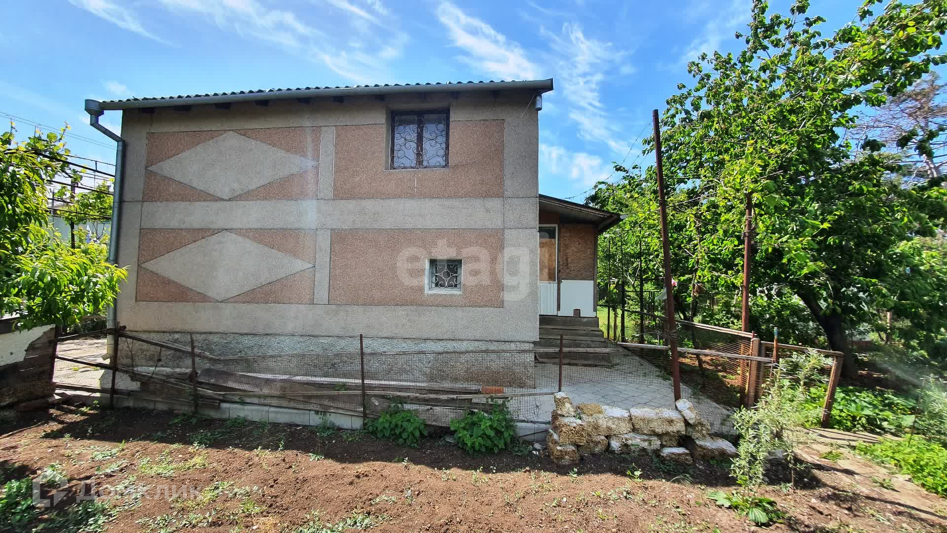 Садовый дом возведен из камня-ракушечника, состоит из 3 этажей, один из которых подземный (подвал) по всей площади дома. В доме имеется прихожая, кухня, 4 комнаты и просторный гараж. С внешней стороны фасад покрыт мраморной крошкой. Отопление дома печное. В дом заведено электричество, имеется техническая возможность заведения в дом водопровода с территории земельного участка и оборудования выгребной ямы на месте, расположенных во дворе уличного туалета и летнего душа.