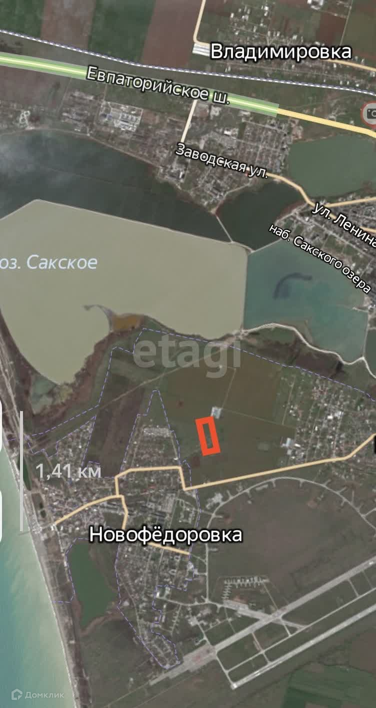 Район активно обустраивается, через дорогу расположены Новофедоровские дачи, подъезд прямо к участку по грунтовой дороге. Земля обработана. До лесного массива 1,5 км, сразу за ним расположены Сакские лечебные озера с лечебными грязями. Воздух и природа настолько чистые, что оттуда просто не хочется уходить. По благоустроенной дамбе, наслаждаясь воздухом соленого озера, можно пешком выйти на набережную г. Саки, прямо к санаториям.
