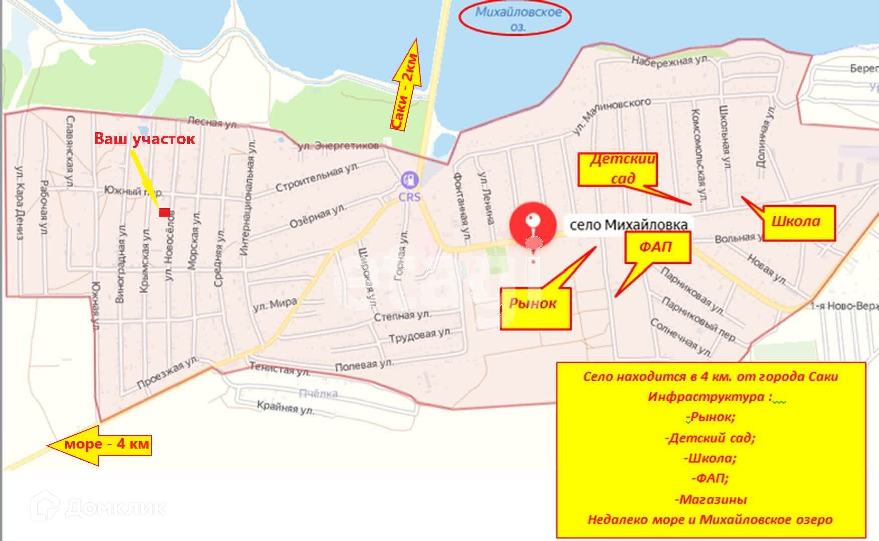 Участок ИЖС площадью 10 соток находится в новом застроенном массиве поселка Михайловка Сакского района.