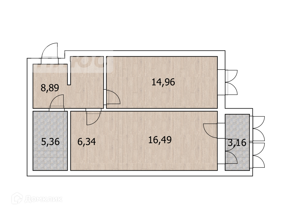 Общая площадь 53.6 м2