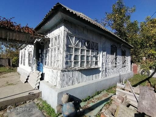 Дом из саманного кирпича , крыша шифер, окна деревянные, в самом доме побелка, разводка электричества, полы деревянные. Из коммуникаций- центральный водопровод, электричество, газовая труба по фасаду.
