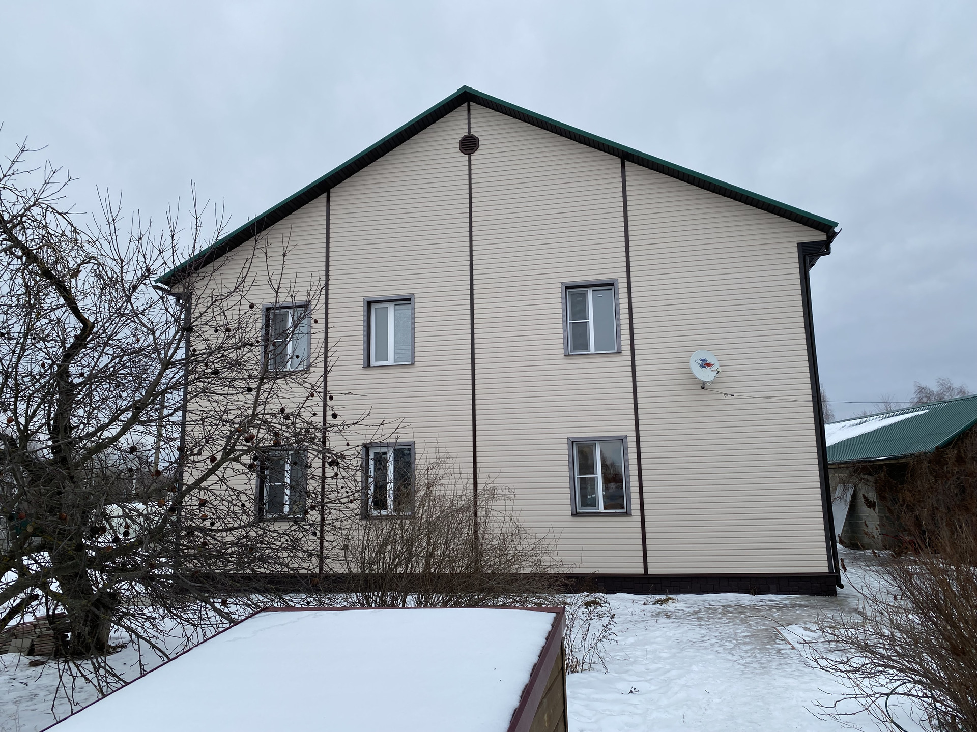 Дом построен в 2020 г. Полноценный 2 этаж. Газобетон. Кирпич. Ленточный фундамент. Отделка сайдингом. Отопление дома и нагрев воды осуществляется двухконтурным газовым котлом. Трубы, котел, батареи, окна, утеплитель (холлофайбер) всему нет и 3х лет. Дом нуждается в косметическом ремонте (на данный момент готовы 2 комнаты из 5). Стены во всем доме оштукатурены и прошпаклеваны. Полы покрыты фанерой. Осталось поклеить обои и положить линолеум. (линолеум закуплен)