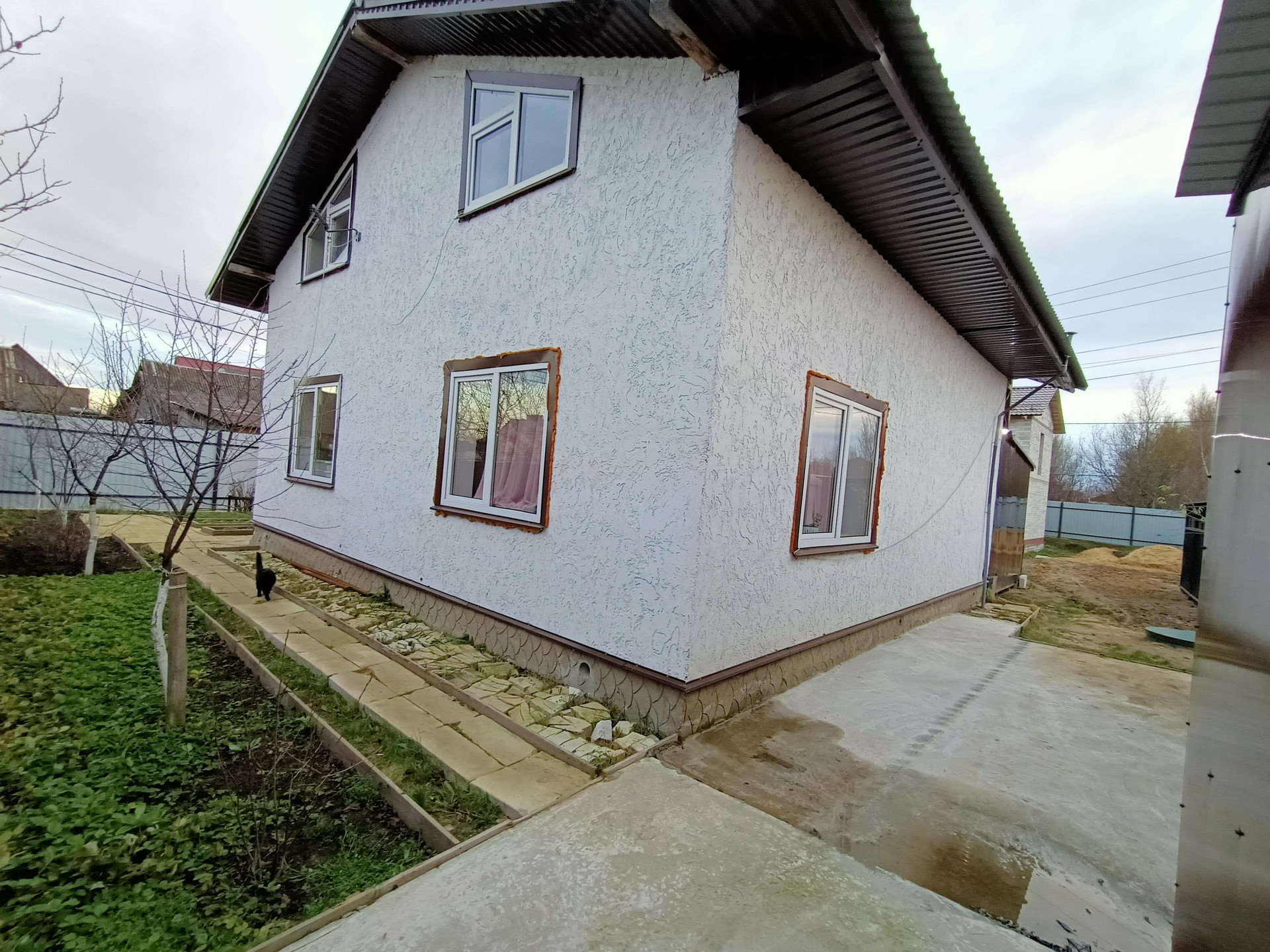 Дом 129м кв., 9*9, 2015года постройки, из газосиликатных блоков, 2этажа, с балконом. Дом разделен на 2семьи, в каждой половине по 3 спальни, 2 кухни, 2 больших ванные комнаты с водонагревателями. Два отдельных входа.