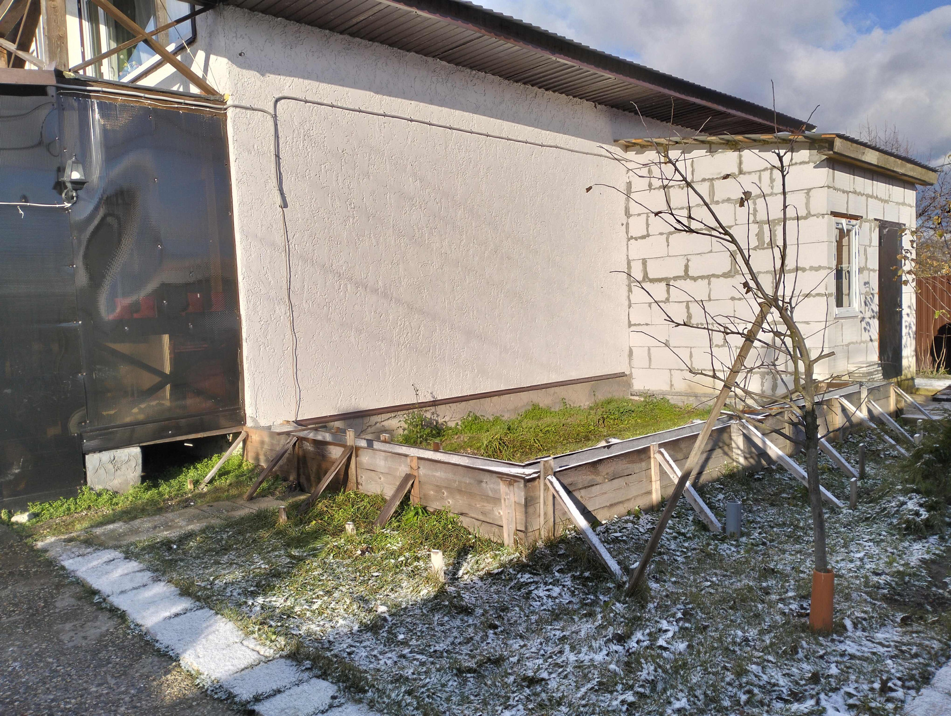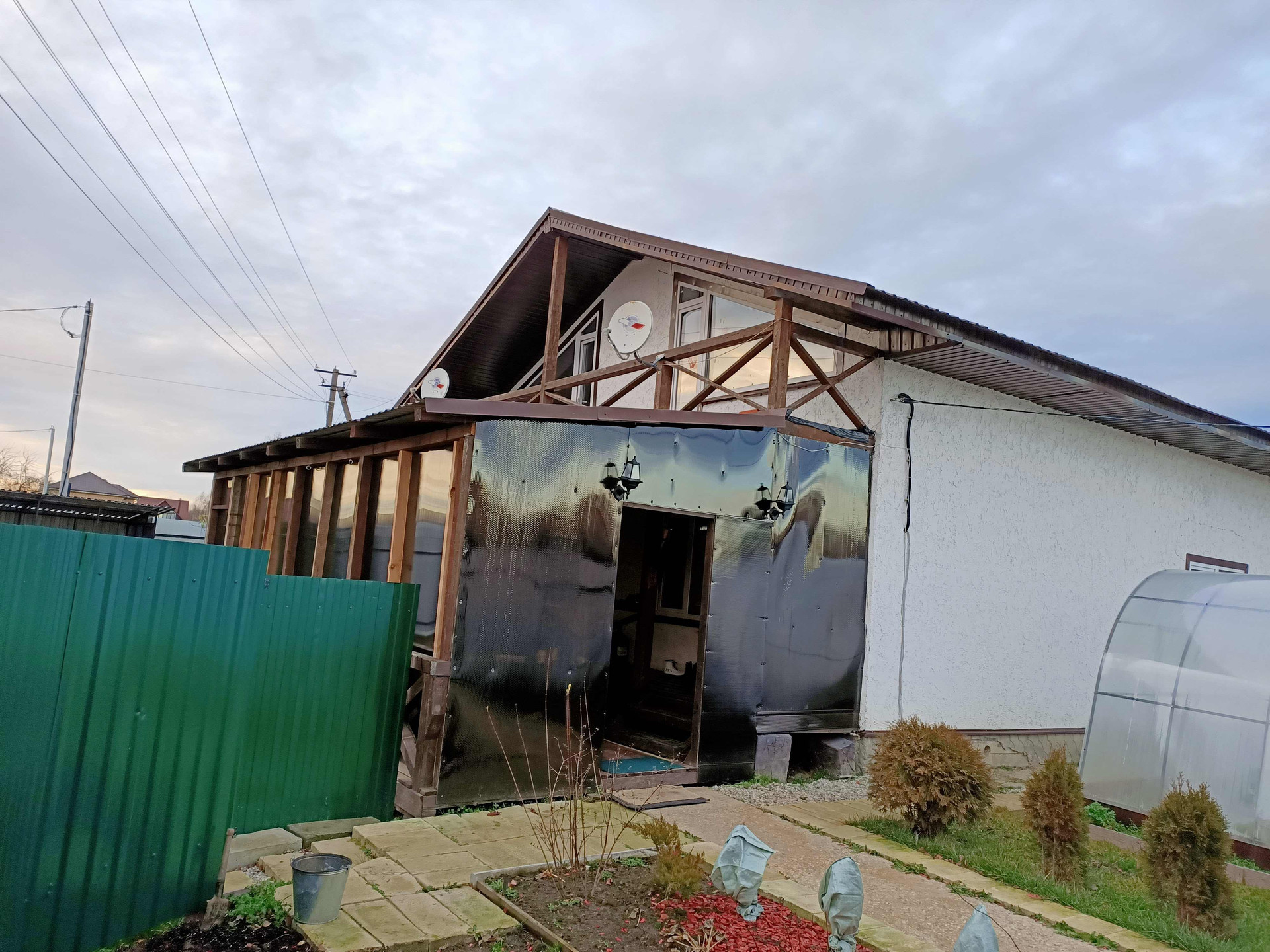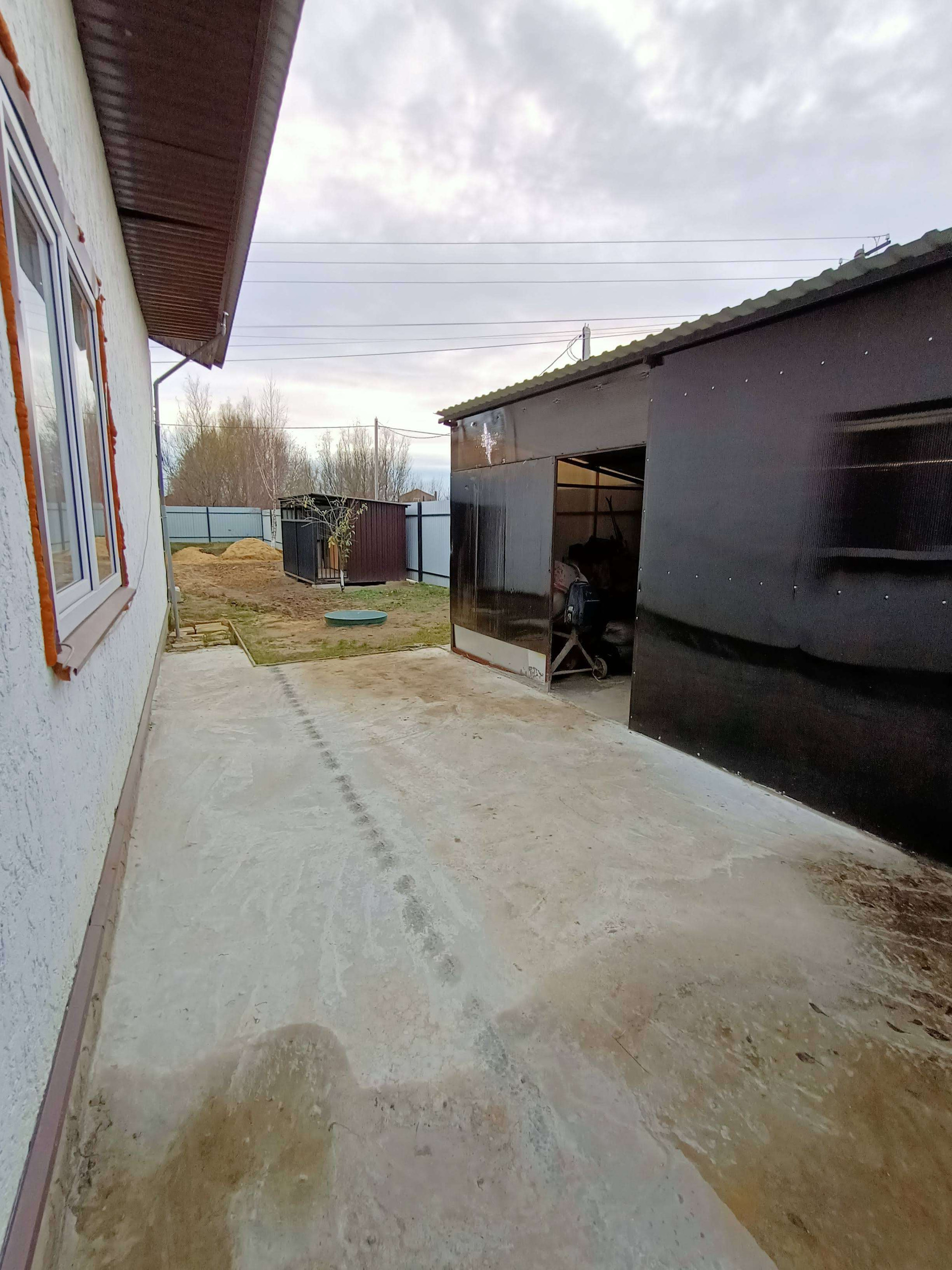 По участку сделана дренажная система. Так же имеется 2 хоз. строения из металла и поликарбоната на бетонном фундаменте. На участке теплица, плодовые кустарники и деревья. Пристоенная к дому закрытая поликарбонатом терасса 3*9.