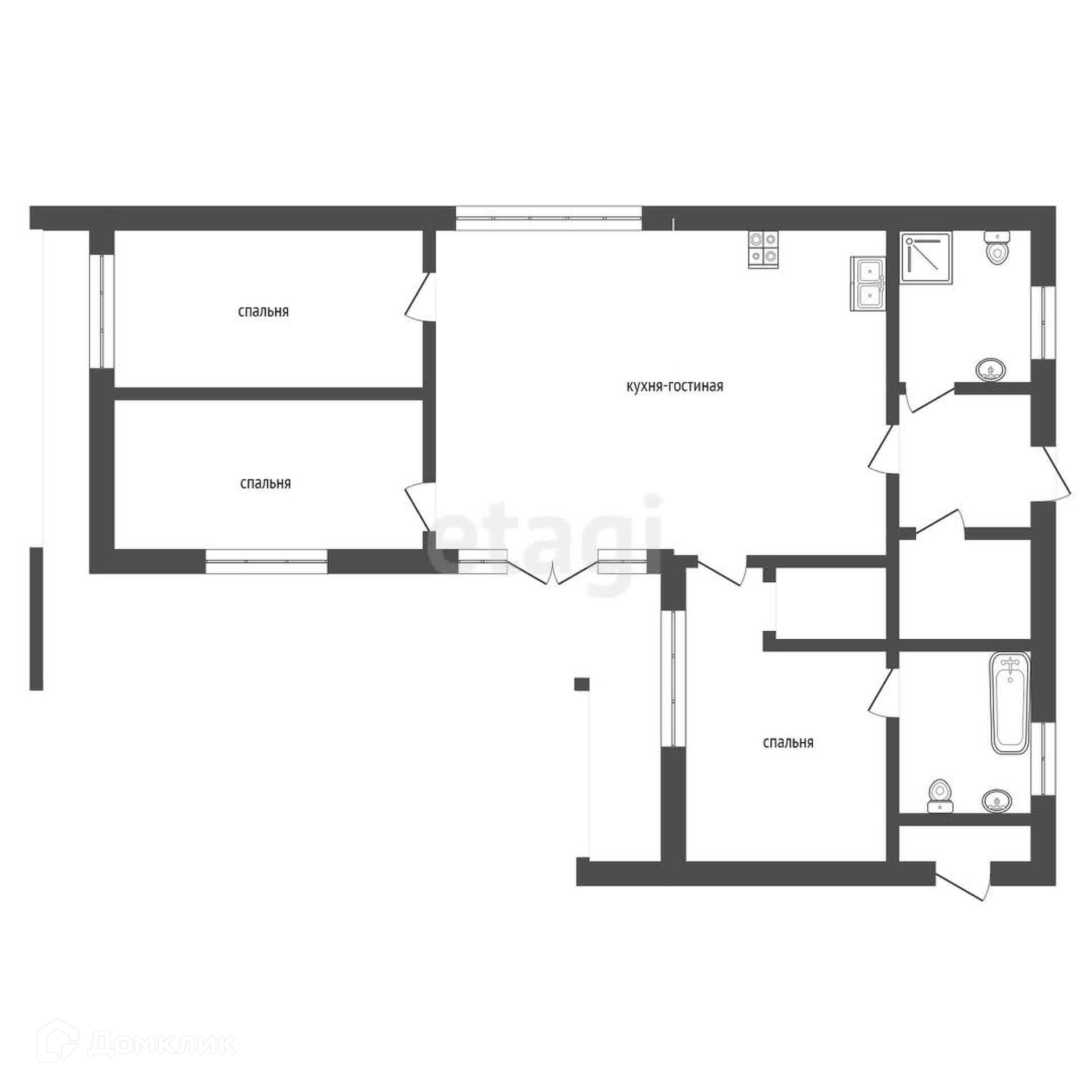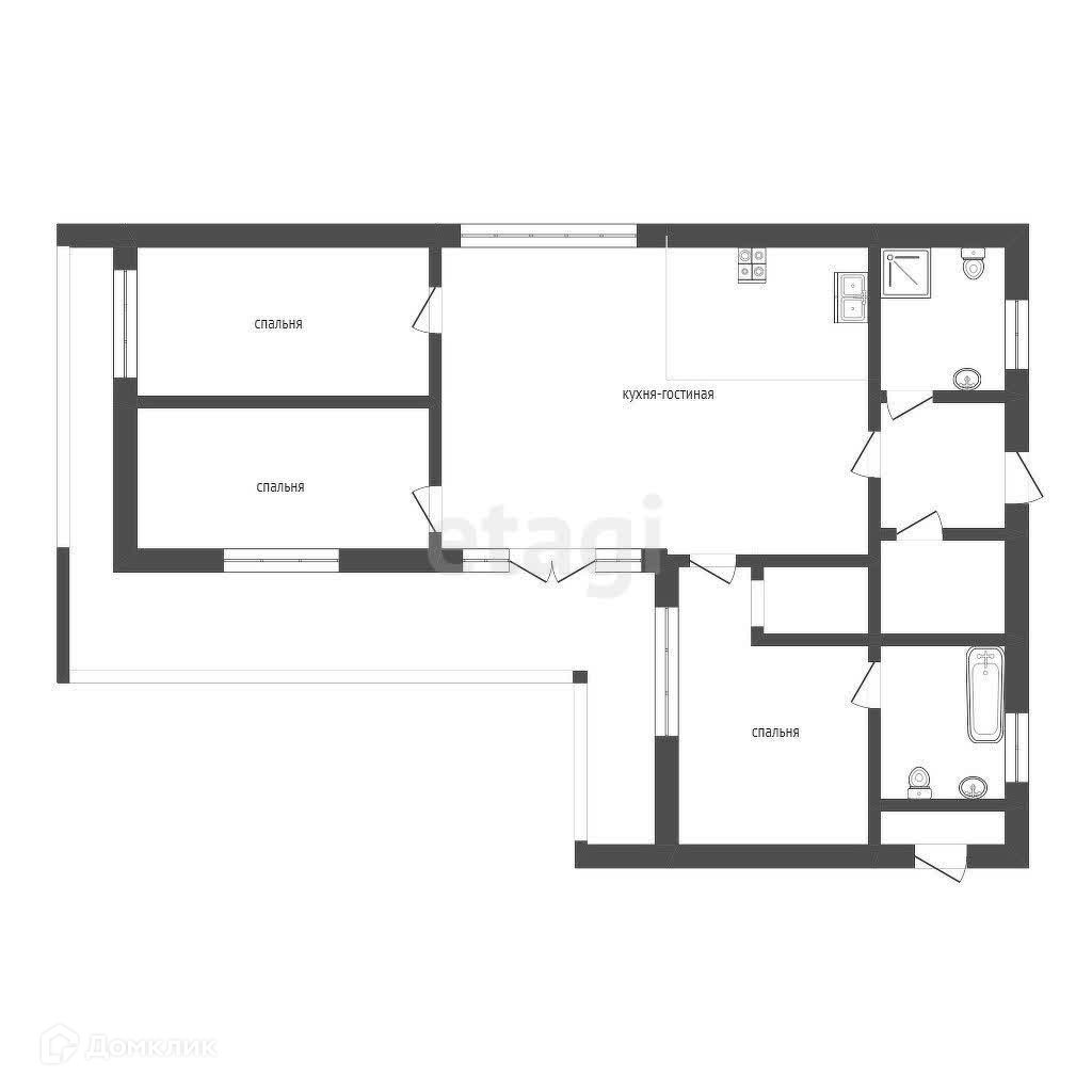 Из всех комнат и гостиной есть выход на веранду.