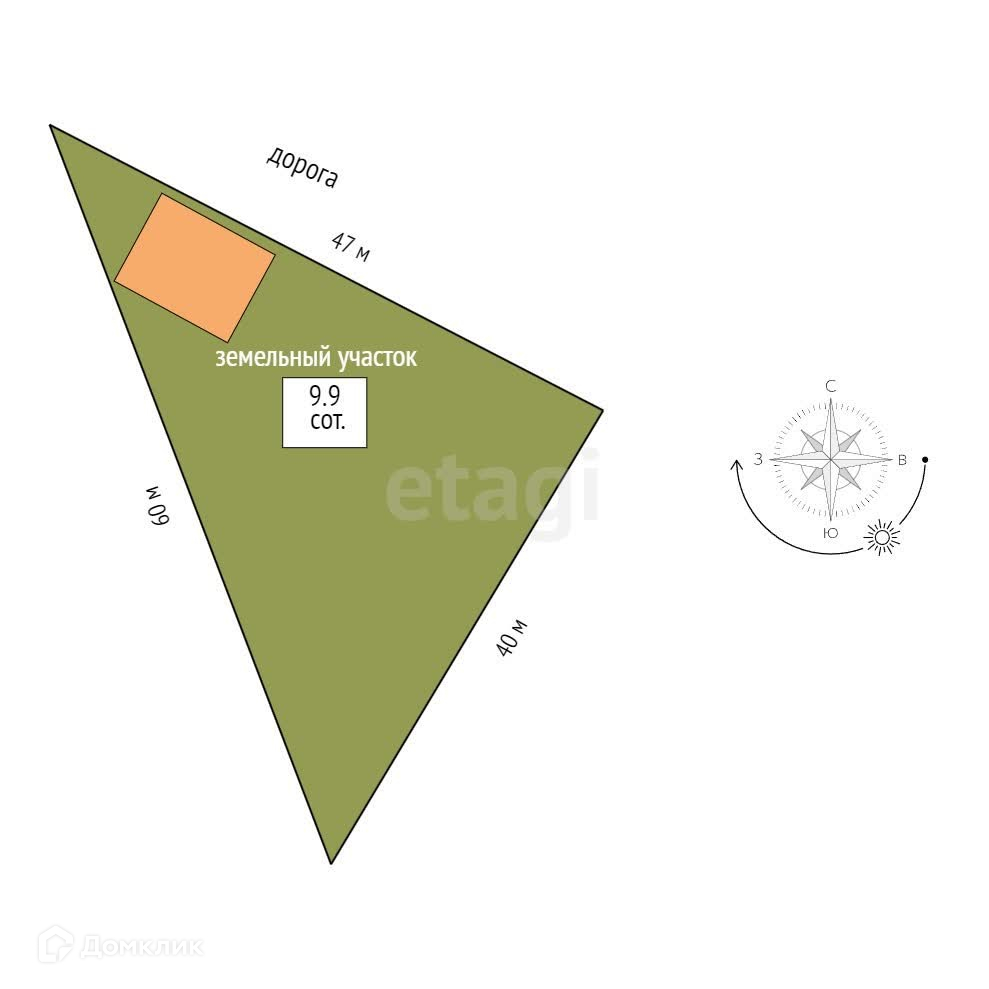 Площадь участка 9.9 сот.