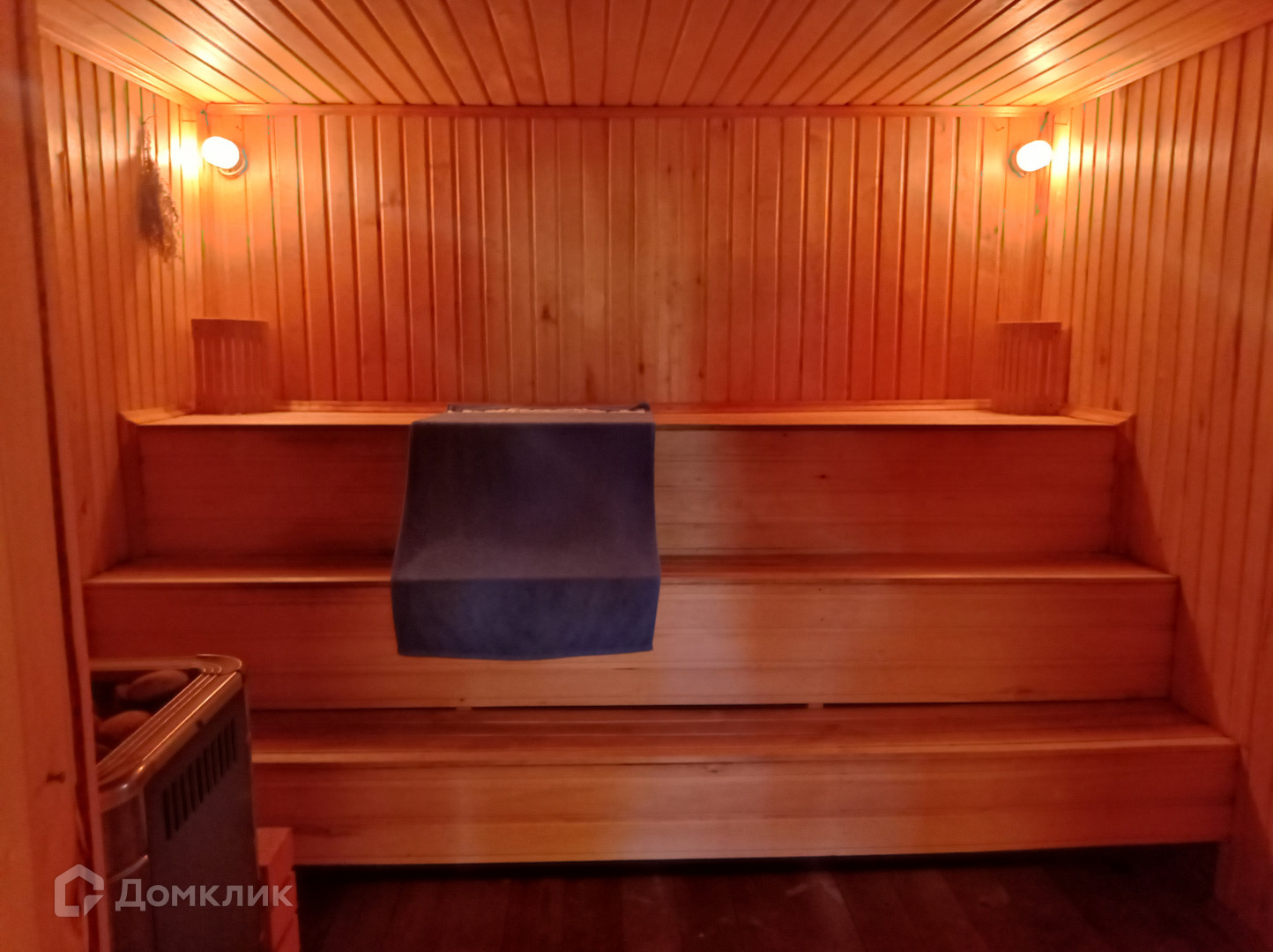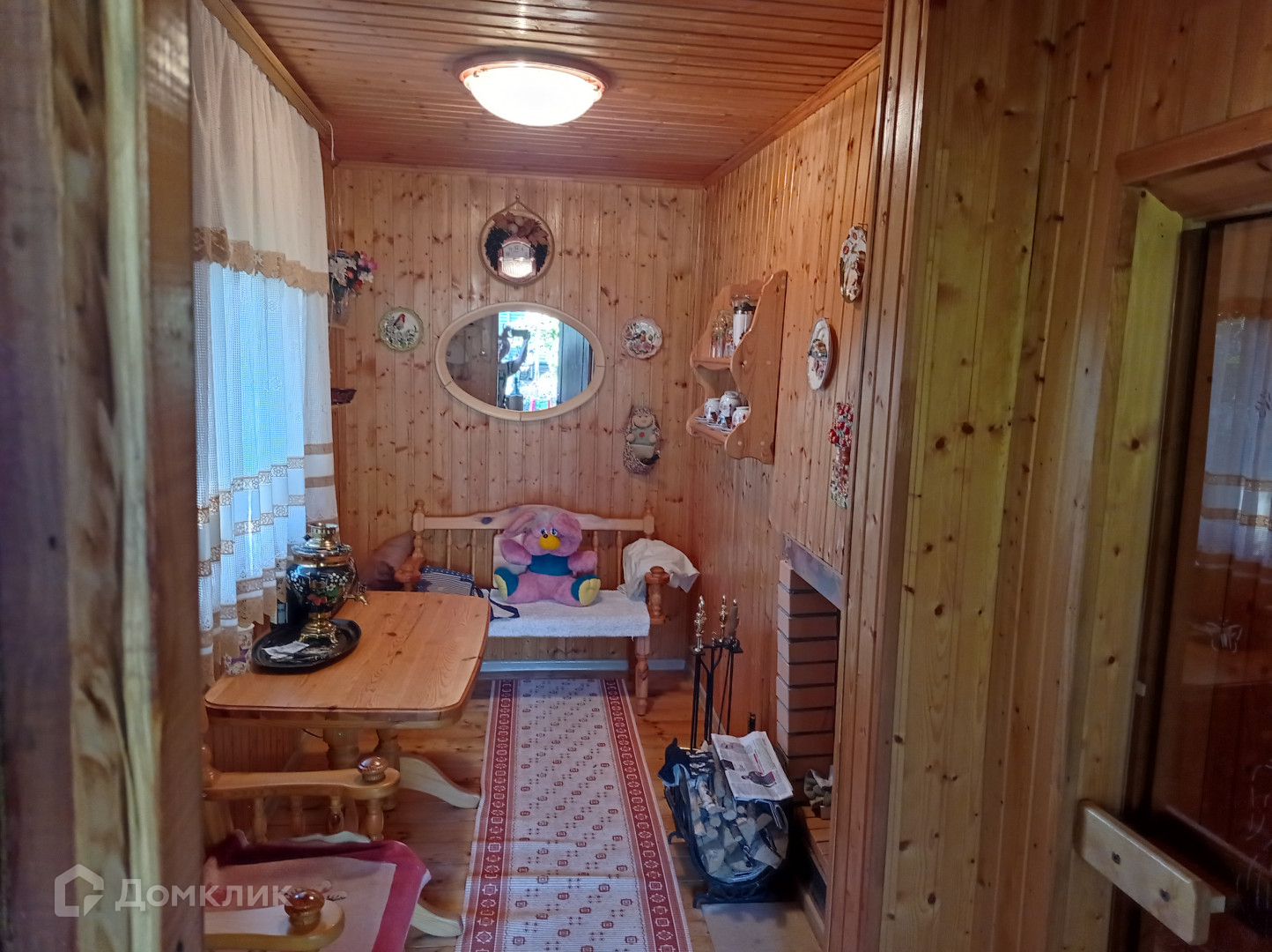 Внутри баня обшита из разных видов деревьев.