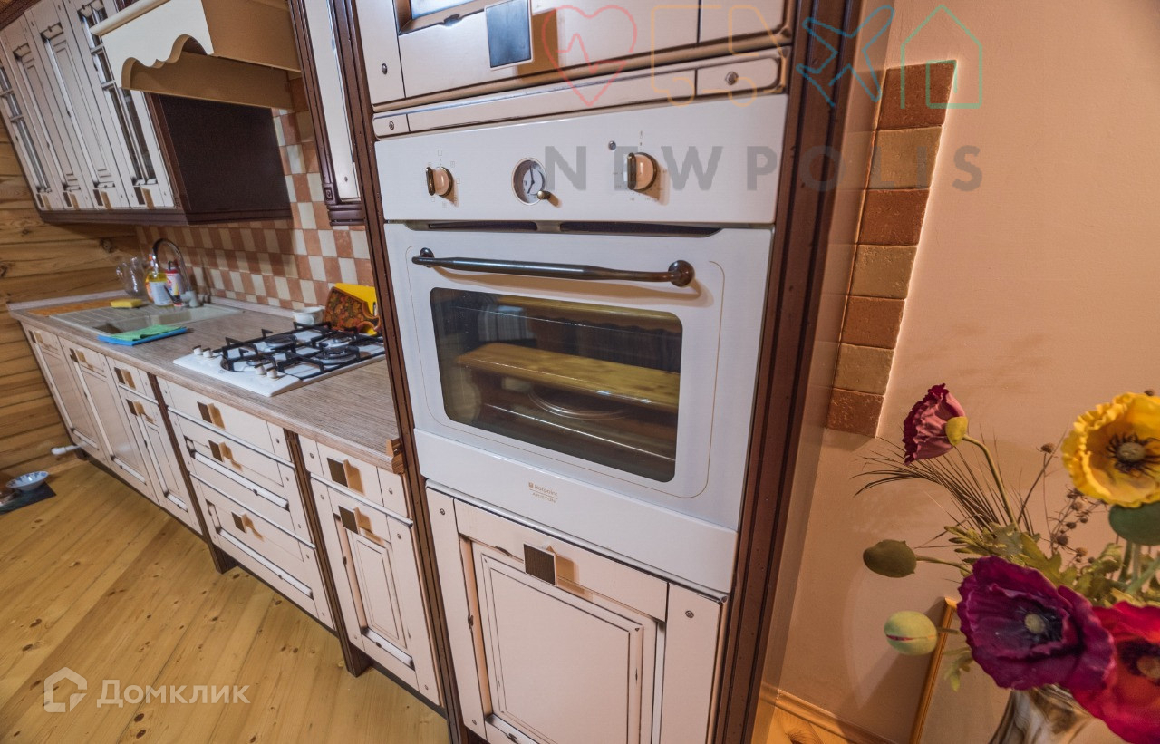 - В кухне - столовой площадью 15 м2, установлен современный кухонный гарнитур, оснащенный встроенной варочной панелью, посудомоечной машиной и духовым шкафом. Холл и гостиная зонированы стенами с арками. В гостиной предусмотрено спальное место для гостей, современный функциональный диван и мягкие кресла останутся новому владельцу.