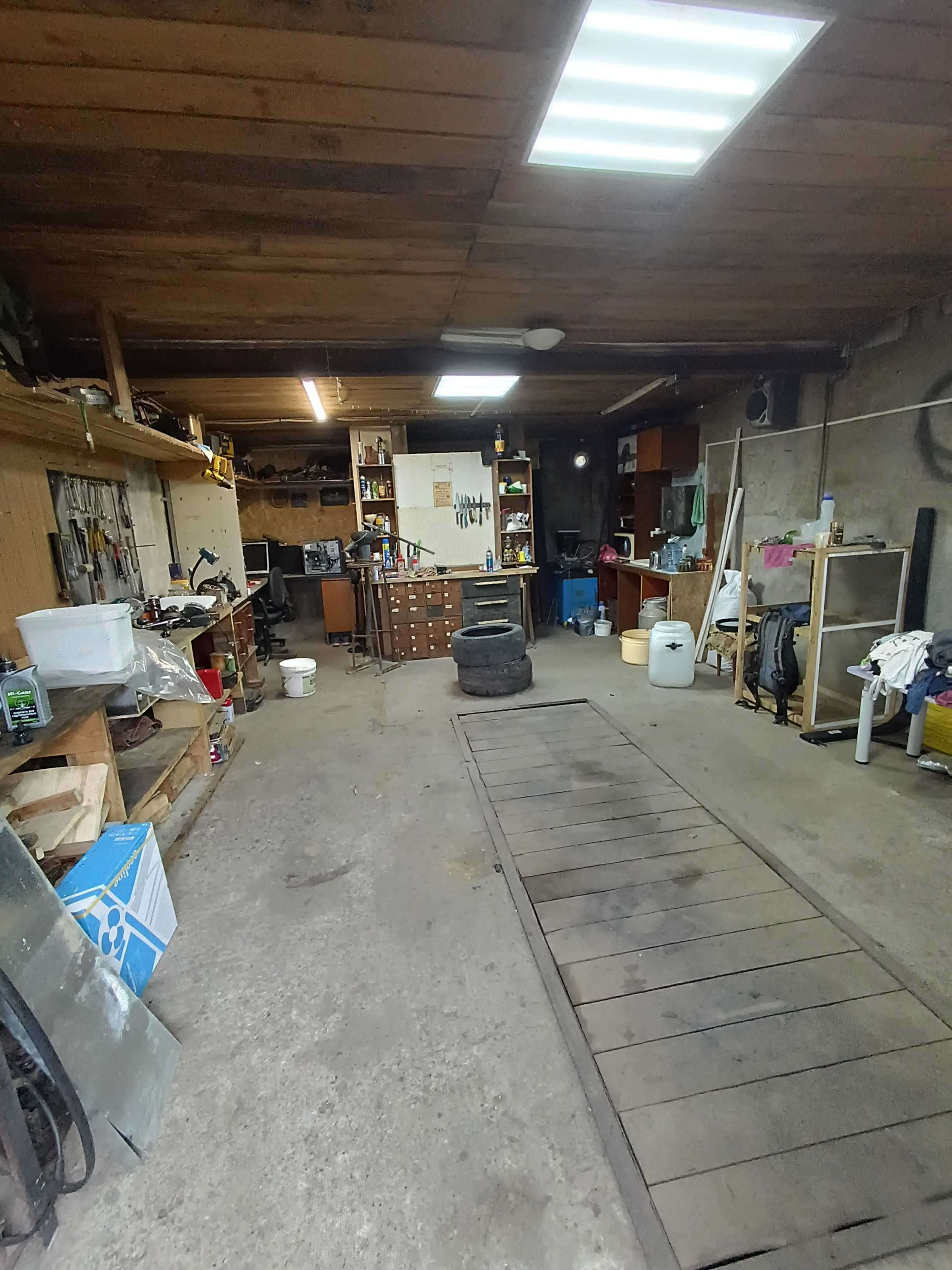 гараж общей площадью 70 кв.м., находится в районе бывшего совхоза. Подвальное помещение под всем гаражом, забита скважина под техническую воду, печное отопление.