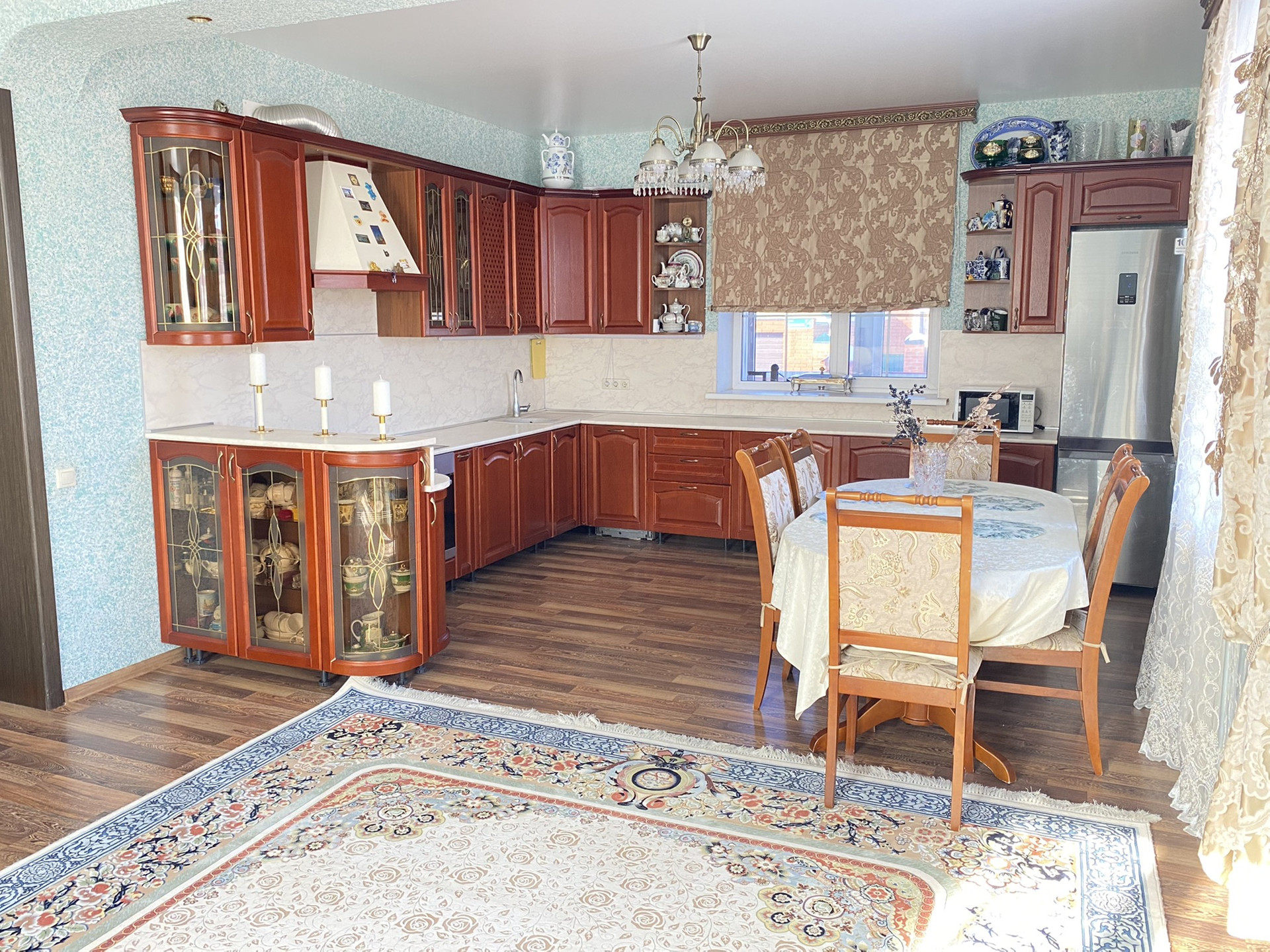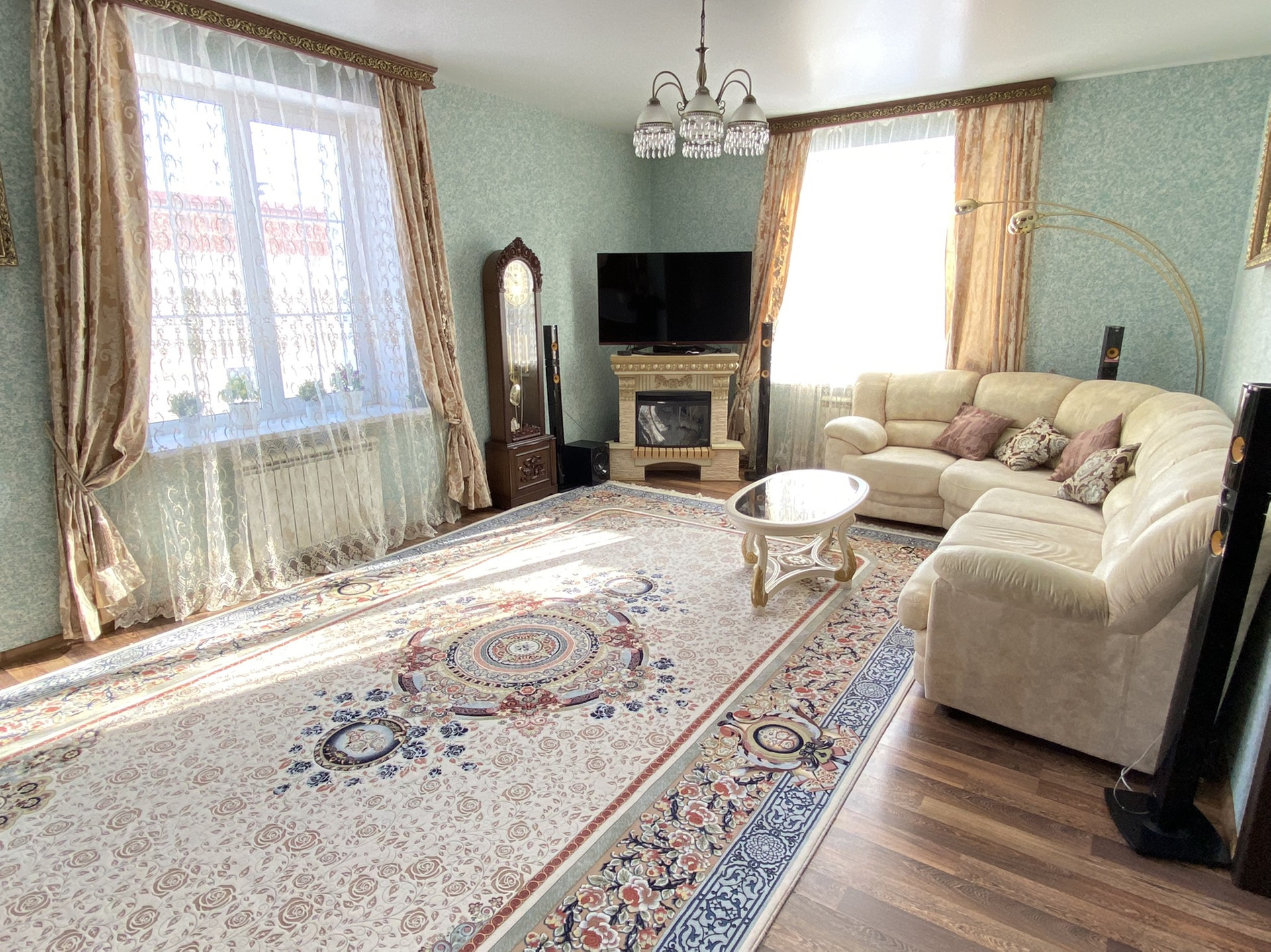 Установлены два отопительных котла газовый и электрический, дом отапливается газовым котлом. Дом очень светлый и теплый.При входе в дом и в санузлах установлены тёплые полы.Отделка произведена из высококачественного материала.В доме 4 полноценные изолированные комнаты и Кухня-гостинная. Вместе с домом остаётся вся Мебель и техника.
