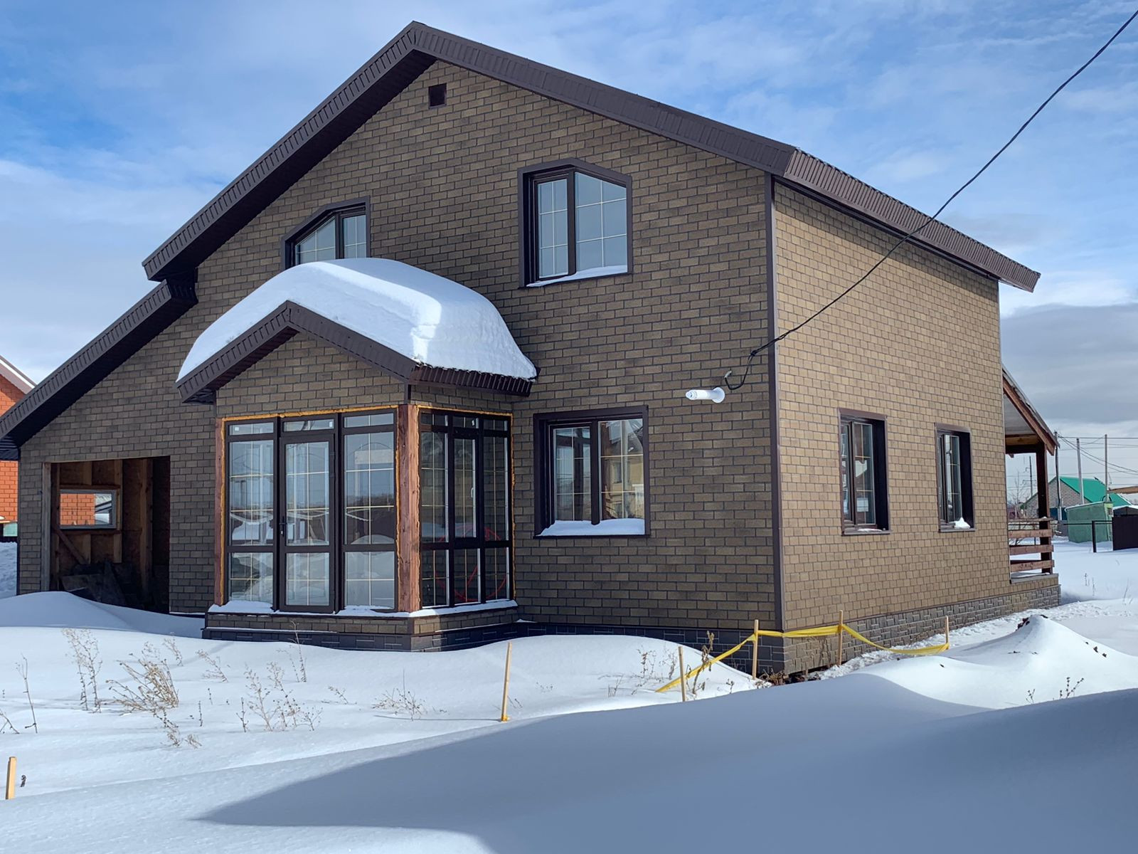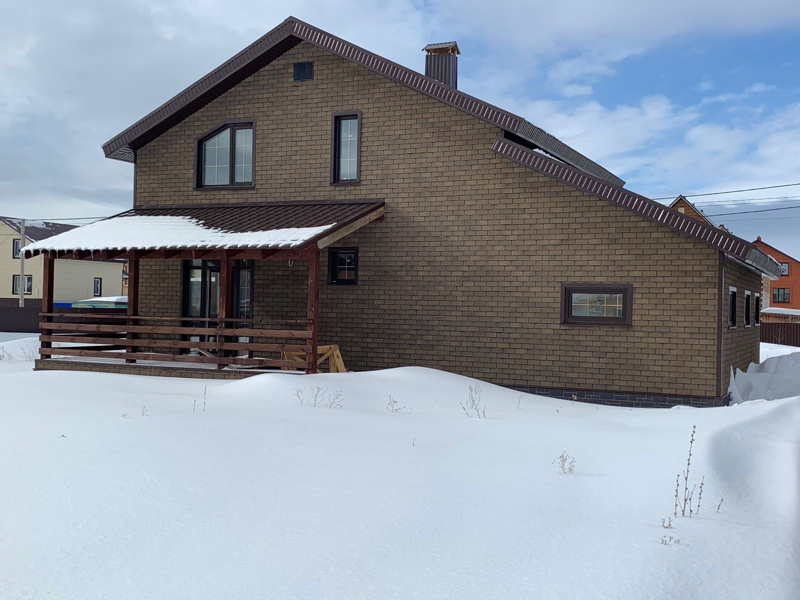 - Снаружи облицован фасадной плиткой Технониколь Hauberk