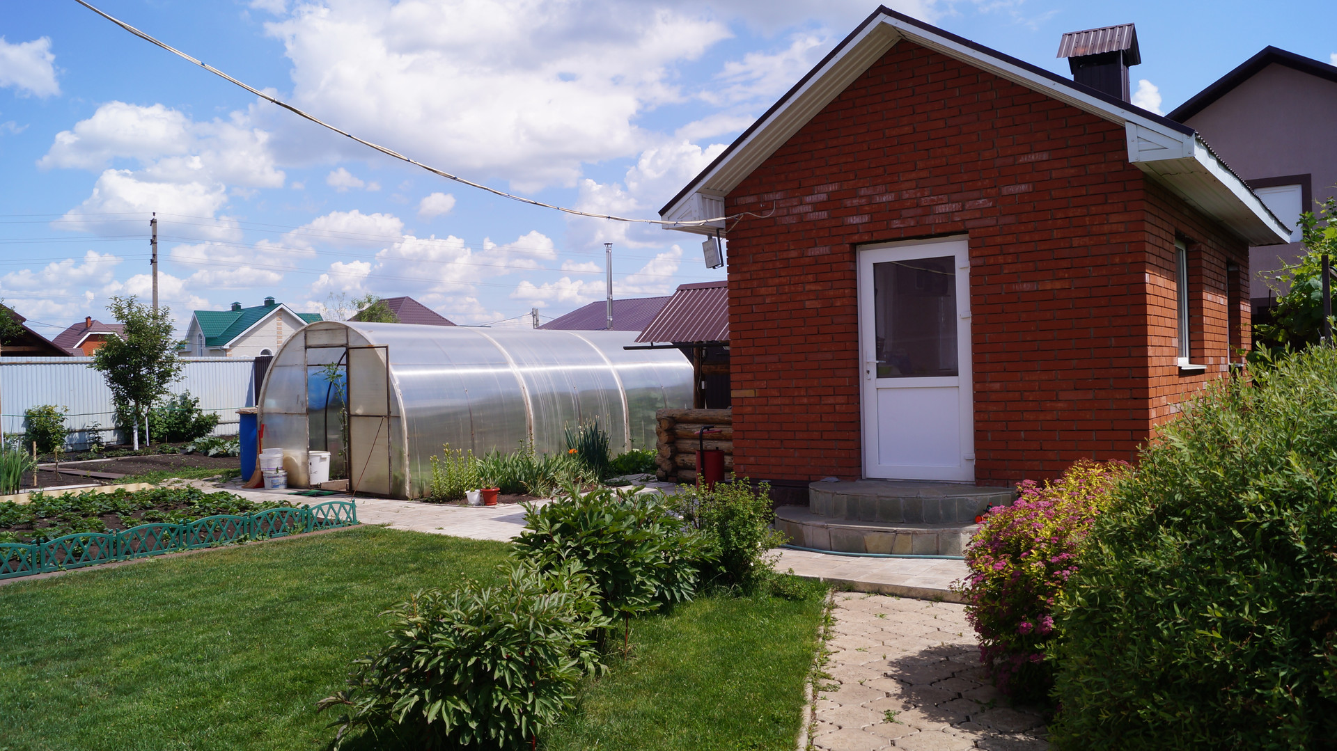 Дом расположен на 15 сотках плодородной земли, что позволяет наслаждаться свежим воздухом. Дом построен для себя, поэтому применялись только качественные материалы и все делалось не второпях и по технологиям. Участок хорошей квадратной формы, дом стоит по центру участка, разделяя его на 2 части. Впереди газон и декоративные насаждения, сзади огород.
