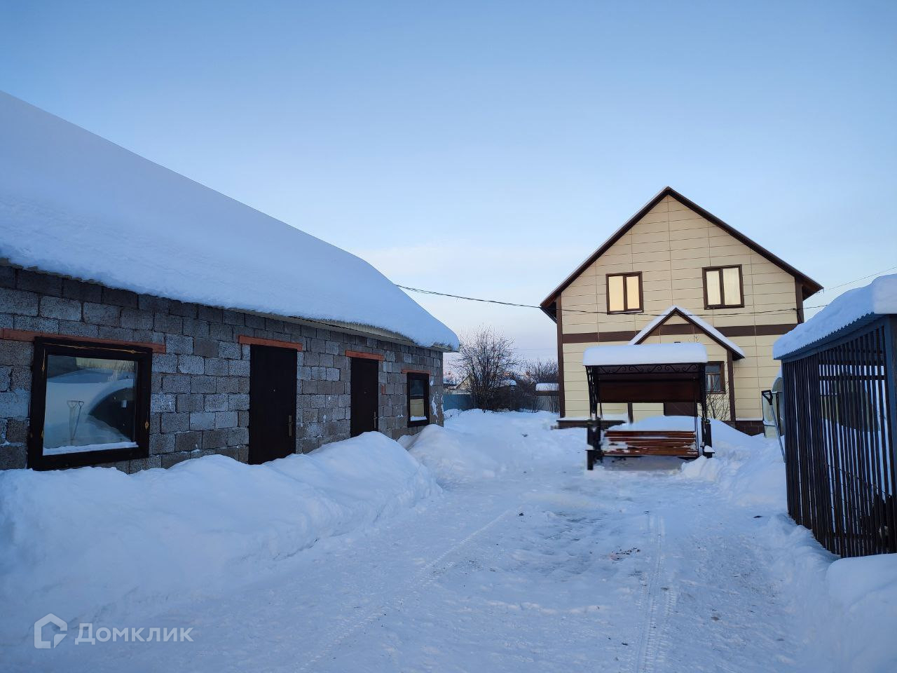 Участок огорожен металлическим забором по всему периметру. Придомовая территория облагорожена, большая парковка для нескольких автомобилей.