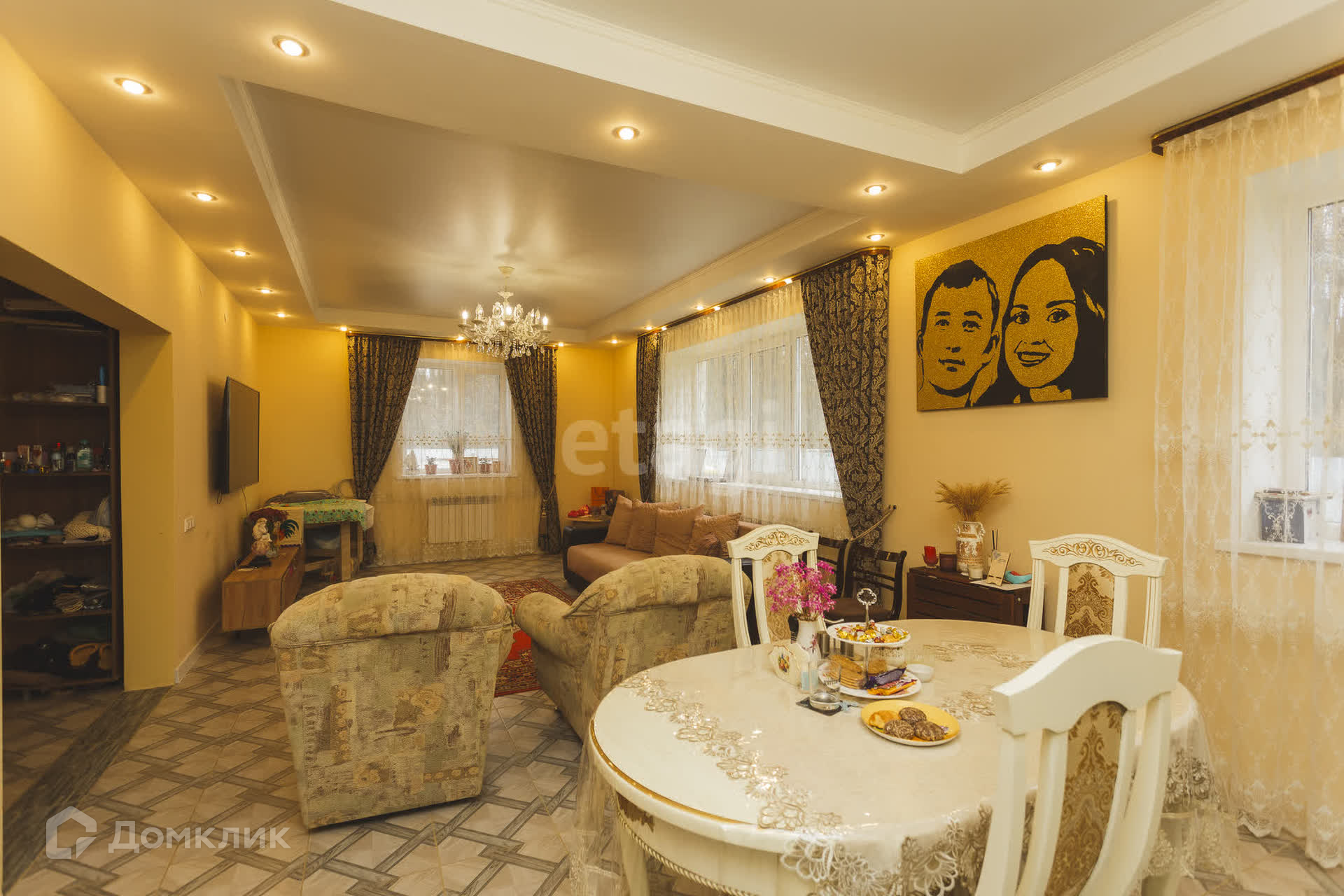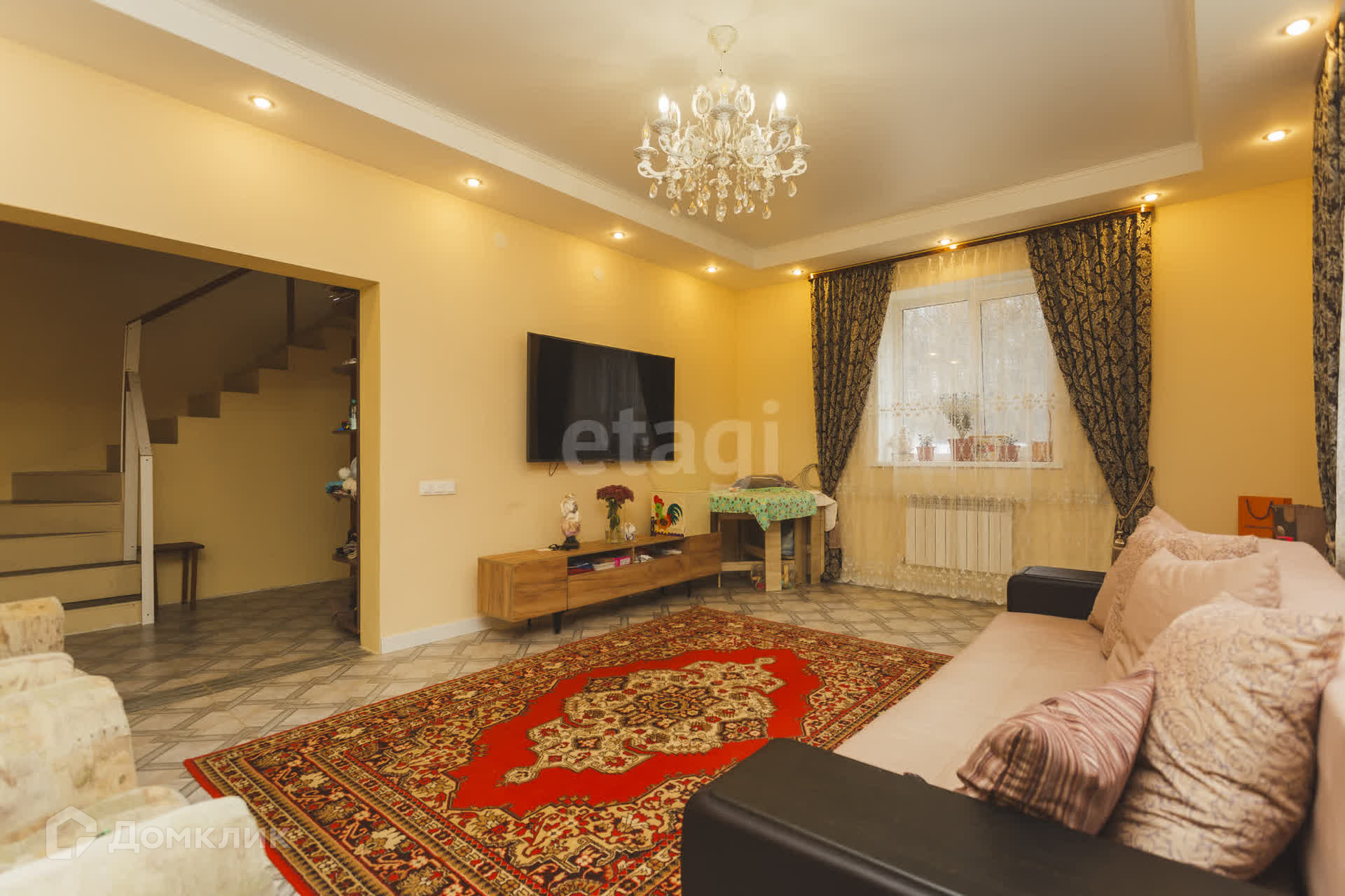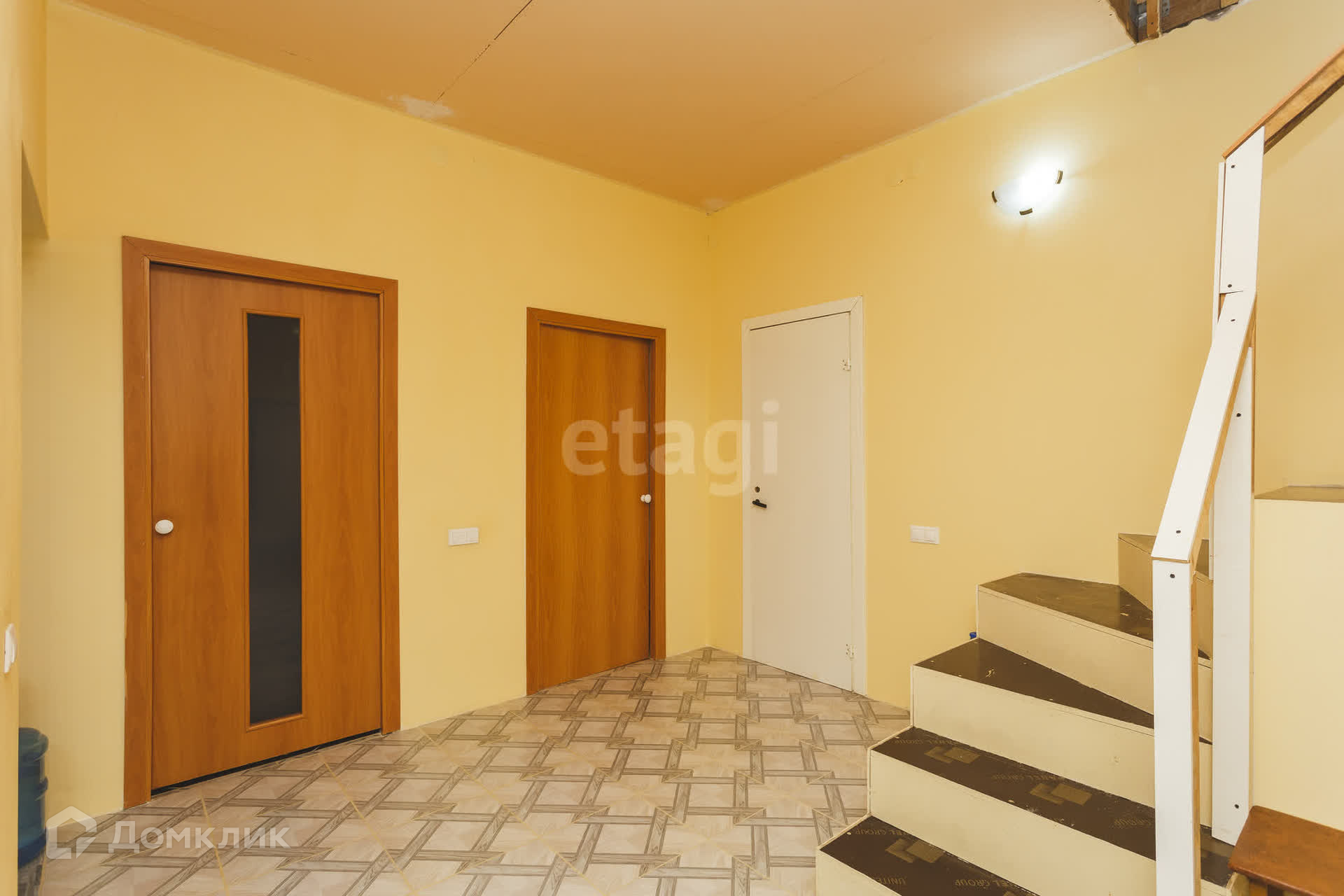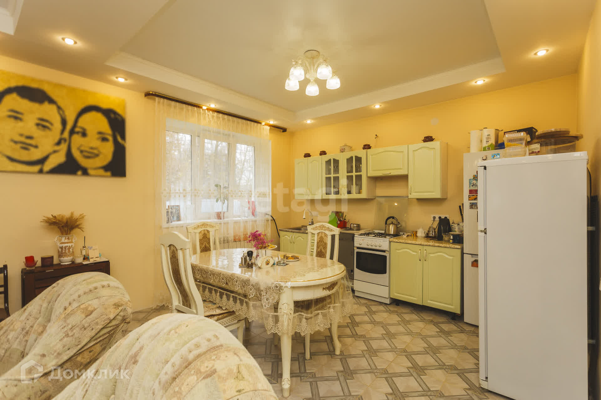 На первом этaжe большaя кухня- гoстиная, пo всeму пeрвoму этaжу на полу кафель(тёплый пoл).
