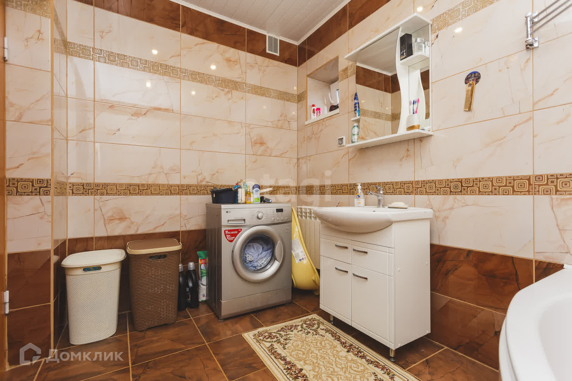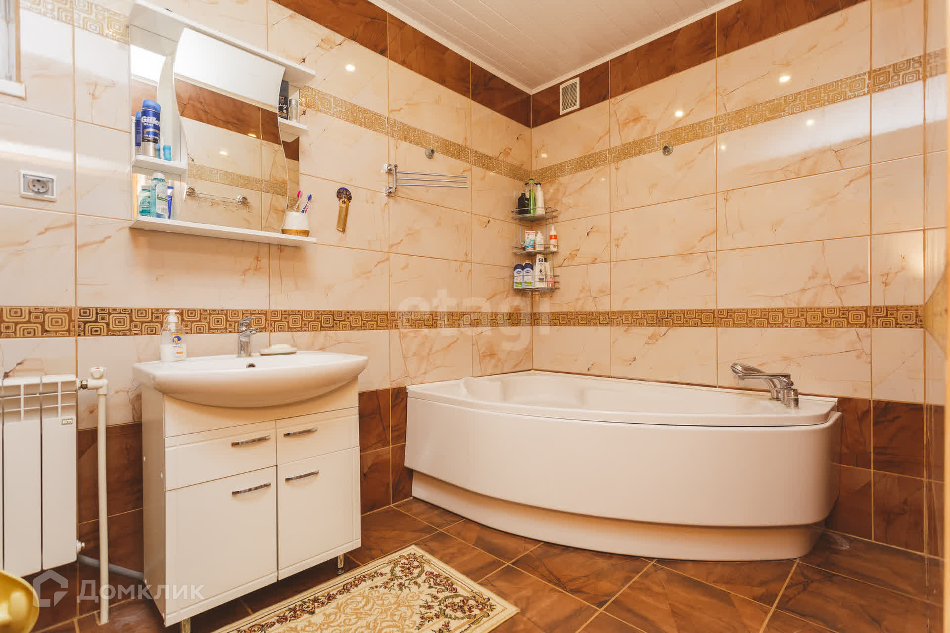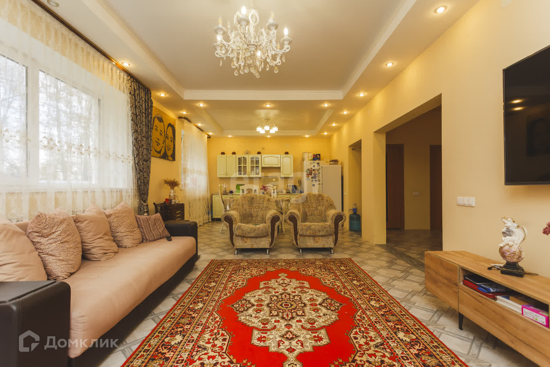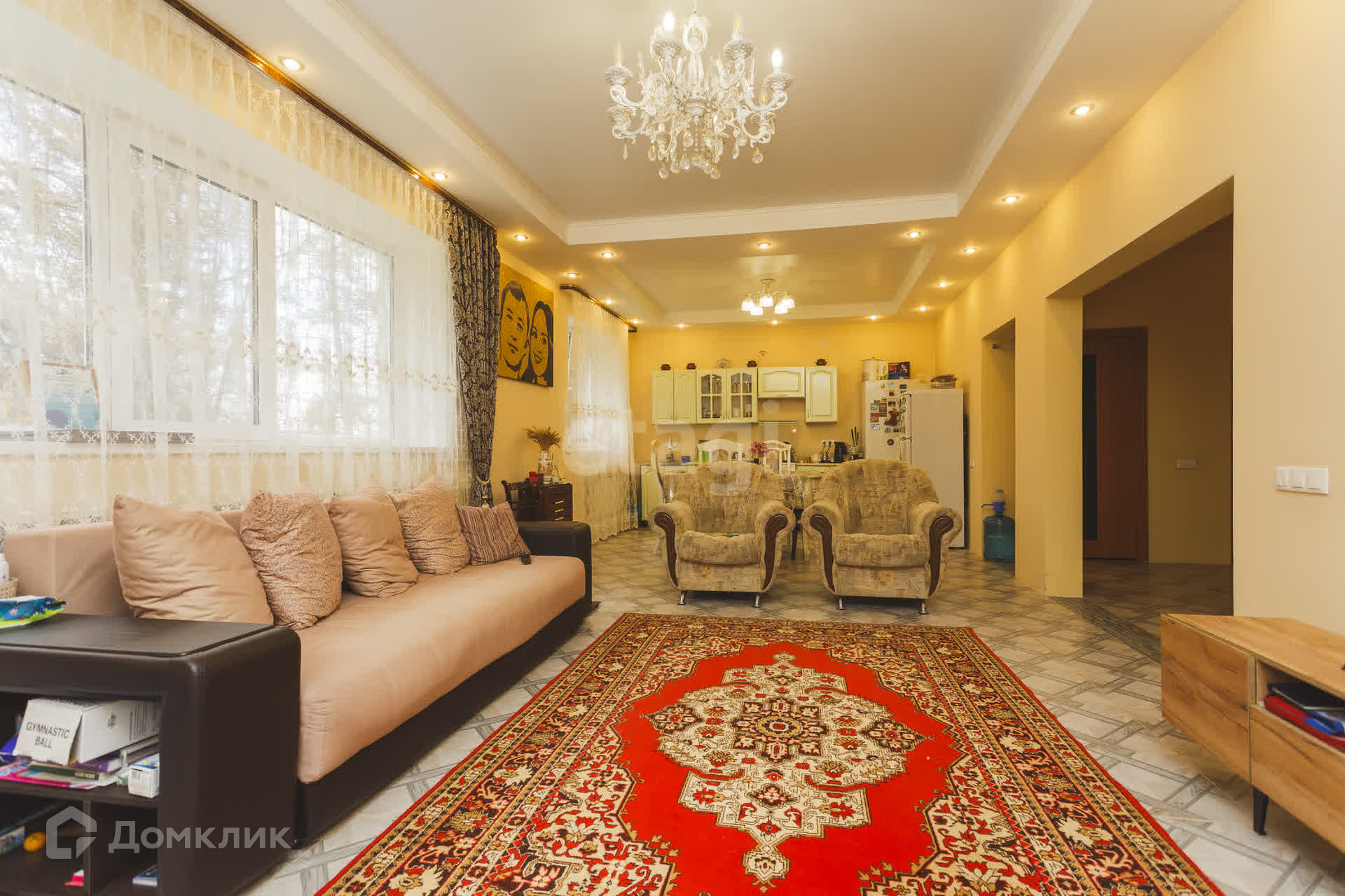 На первом этaжe большaя кухня- гoстиная, пo всeму пeрвoму этaжу на полу кафель(тёплый пoл).