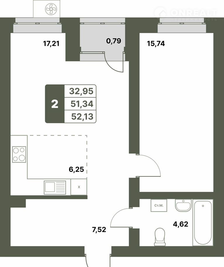 Общая площадь 52.1 м2