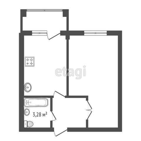Общая площадь 35 кв.м, жилая 16,6 кв.м, кухня 10,8 к.м. санузел совмещен, лоджия остеклена.