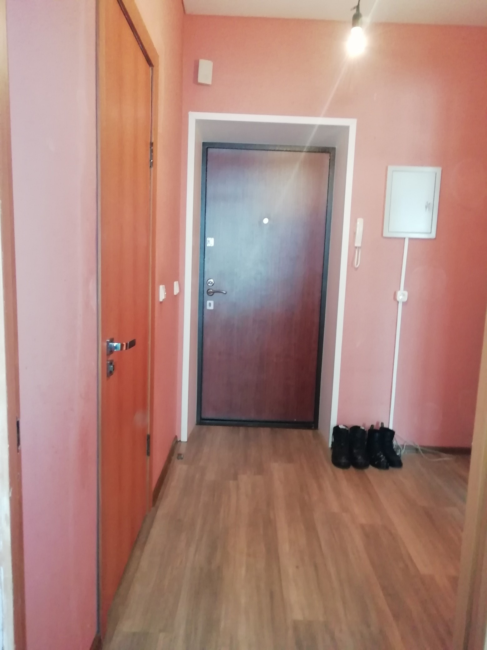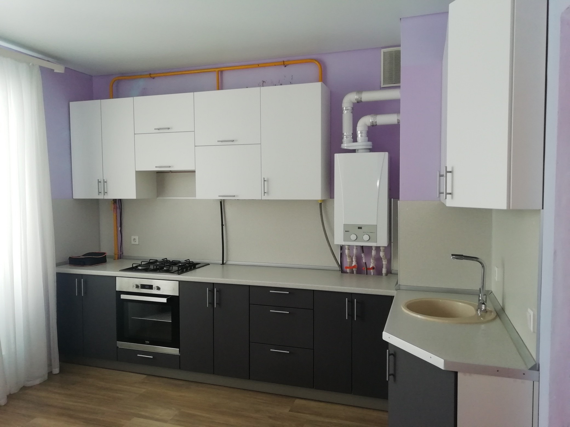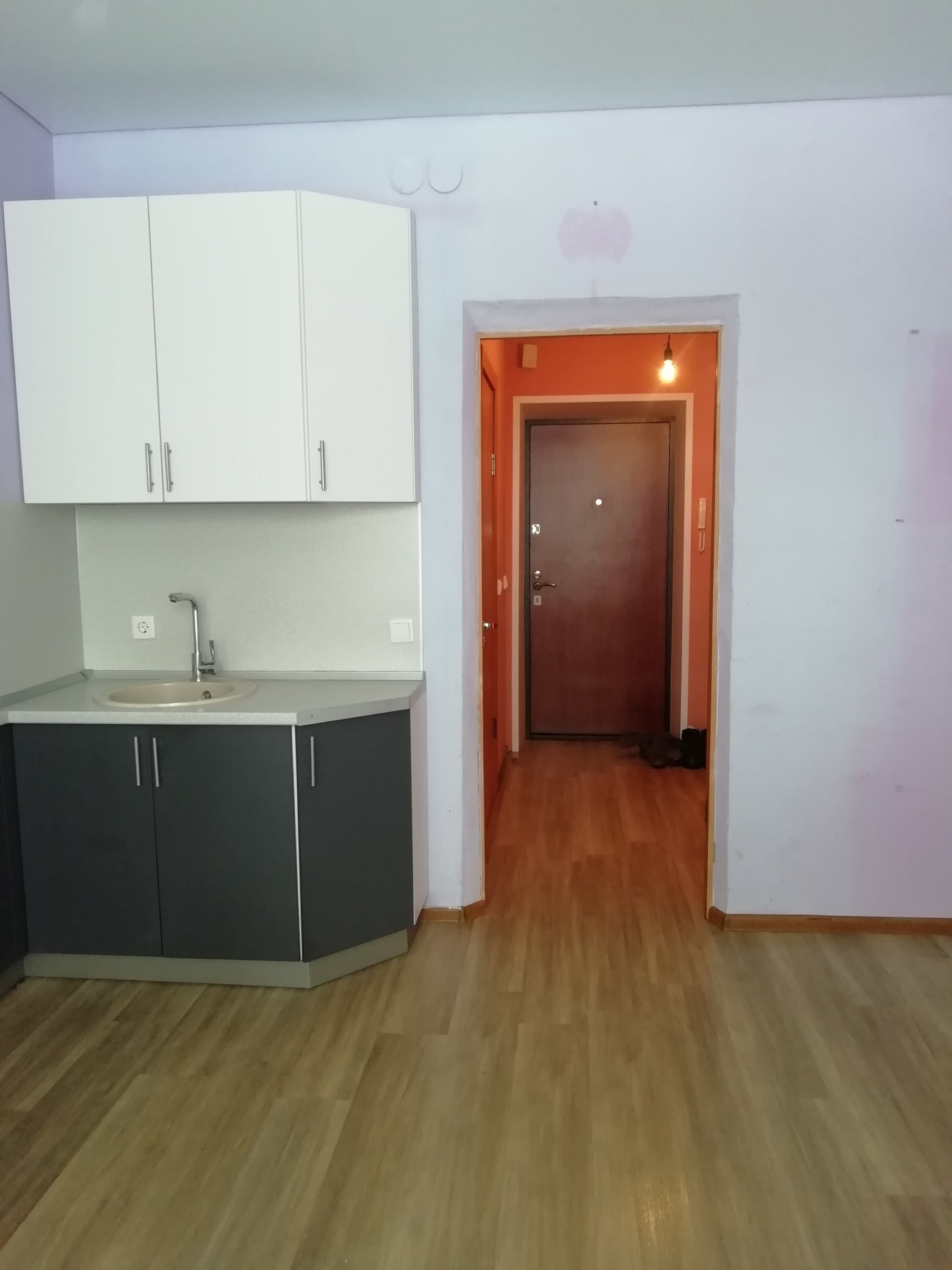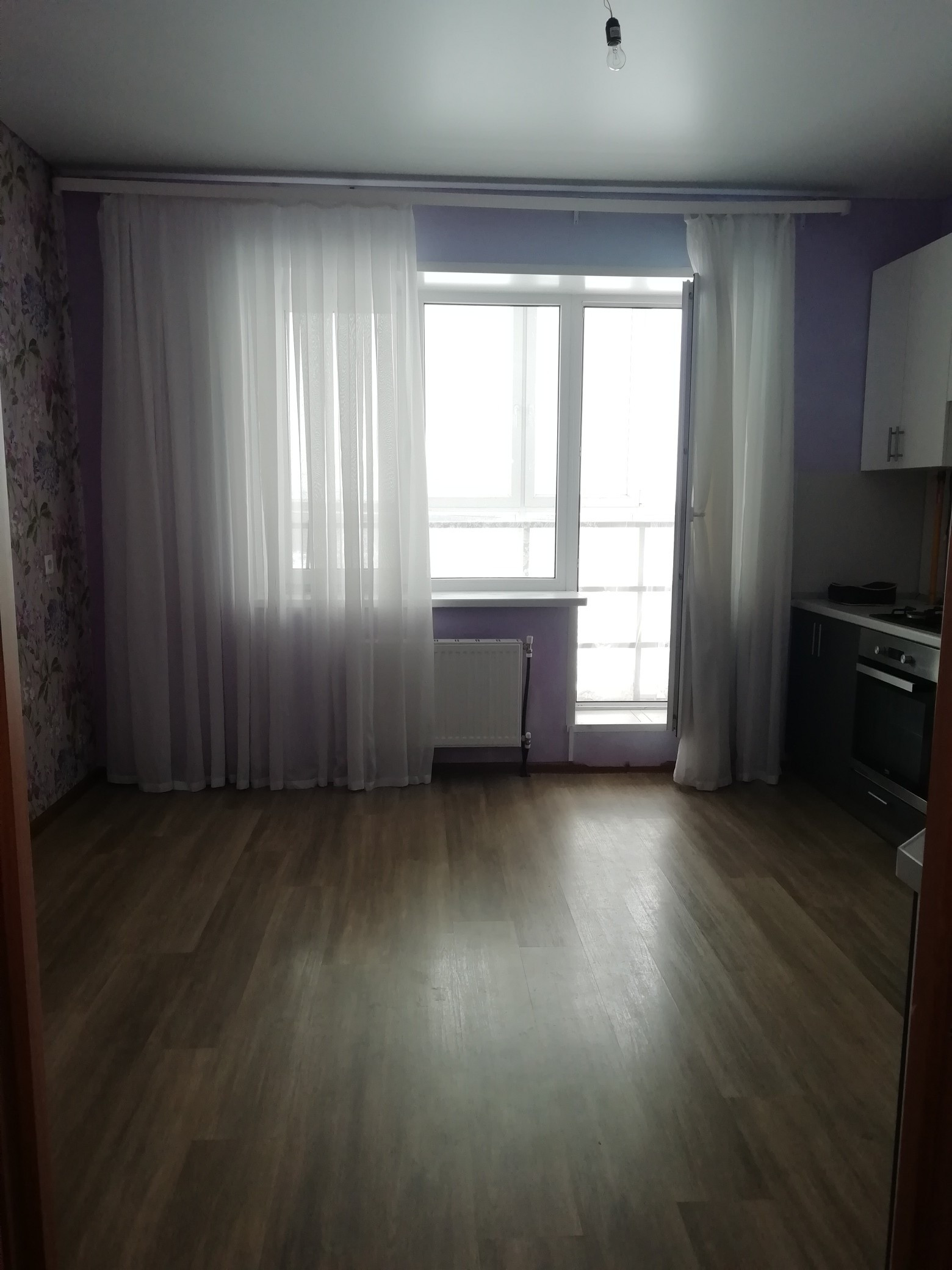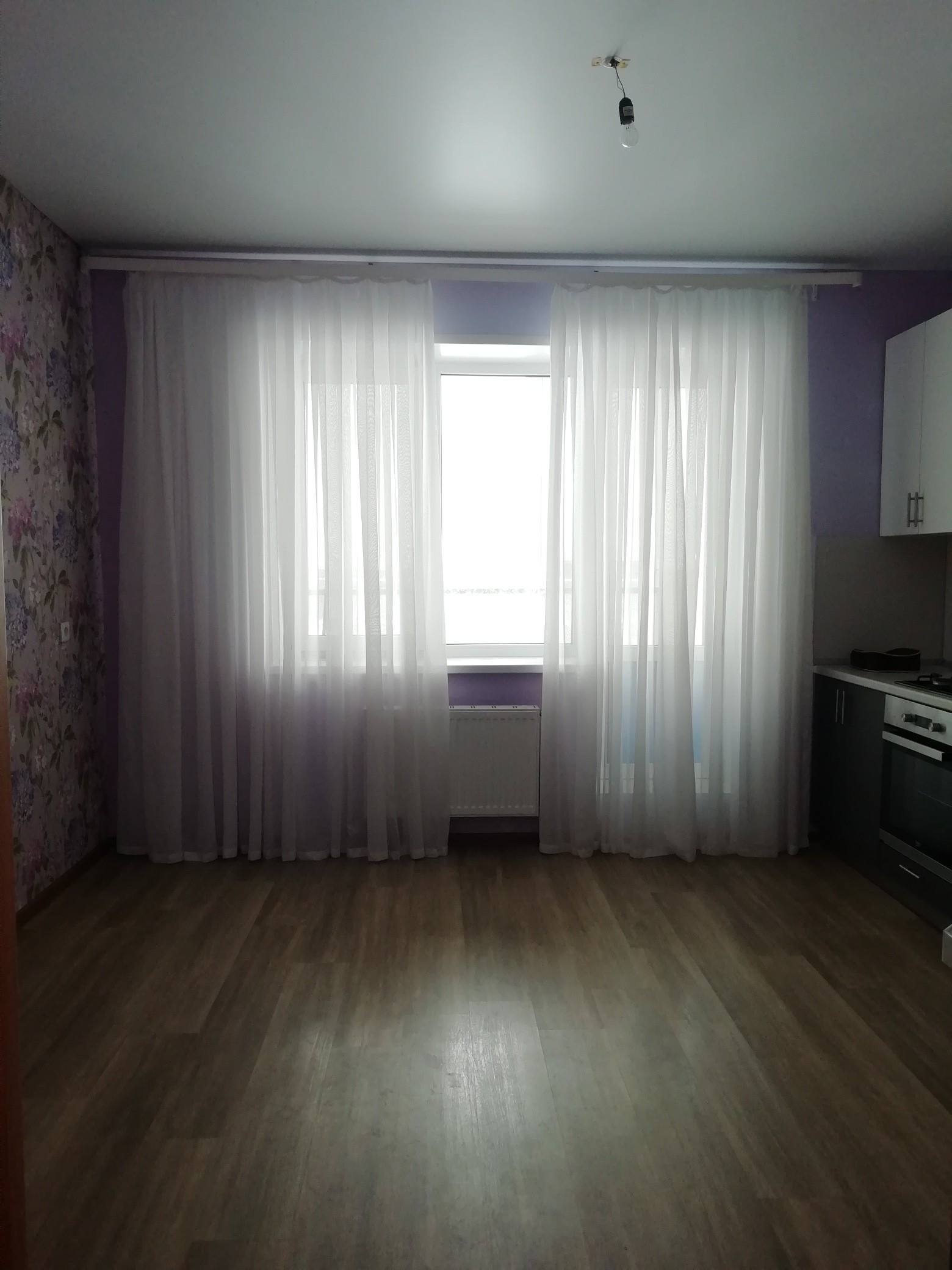 Просторная кухня с выходом на лоджию, уютные комната, совмещенный санузел. Натяжные потолки во всей квартире, ламинат. Остается кухонный гарнитур. Низкие коммунальные платежи за счет индивидуального источника отопления и горячей воды. Просторная прихожая, площадью 5.8 кв.м., с нишей для обустройства гардеробной.