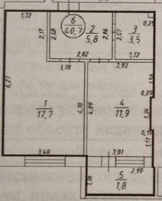 Жилая площадь 17.7 м2