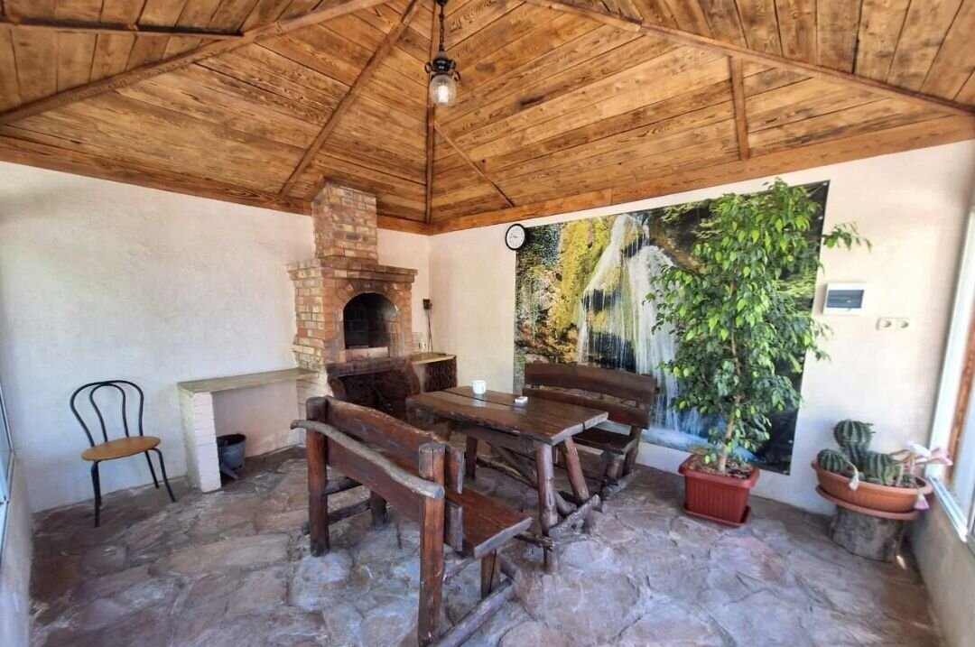 Двухэтажный дом 196.4 кв.м.(зарегистрирован как жилой дом) построен в виде триплекса и имеет 3 отдельных входа. Одна часть дома 100кв.м. полностью отгорожена забором и имеет свой отдельный бассейн и закрытую беседку с мангалом. Размещение 10 человек. Цена аренды в 2025 году от 12000 до 20000 за сутки в зависимости от месяца. Вторая часть дома разделена на 2 входа, домики по 45 кв. метров с другим бассейном. Также рядом находятся еще отдельные три домика по 40 кв.м ( оформленные просто как пристройки).Размещение в каждый домик до 5 человек. Цена аренды от 3000 до 6500 за сутки в зависимости от месяца. Всего в гостиничный комплекс можно разместить до 35 человек. Полноценный просмотр и продажа возможна ближе к осени, так как сейчас комплекс полностью заселен. Занимаемся посуточной арендой около 15 лет, есть наработанная база постоянных гостей, которая всегда пригодится новому владельцу. Продаем в силу возраста и уже невозможности заниматься таким большим комплексом. К моменту продажи, дом будет полностью отделан белым клинкерным кирпичом как на фото (не успели доделать до начала сезона, материал закуплен, работы буквально на 2 недели).