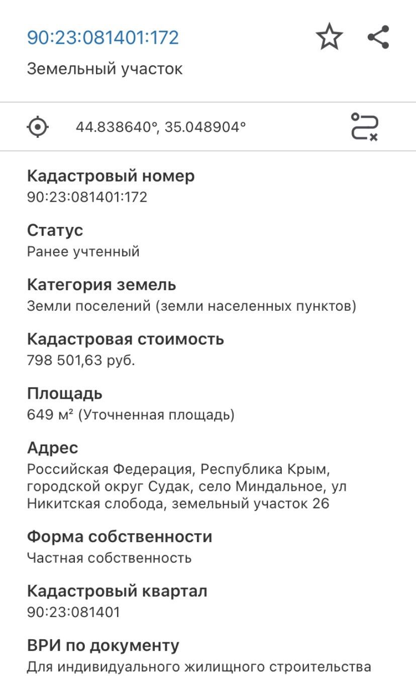 Продается земельный участок под индивидуальное жилищное строительство общей площадью 649 кв.м. Участок расположен на возвышенности, прекрасный вид на Тавриду. Линяя электропередачи рядом с участком, подключение без проблем. Ограничений нет. Торг уместен. Тихое уютное место в развивающемся районе!