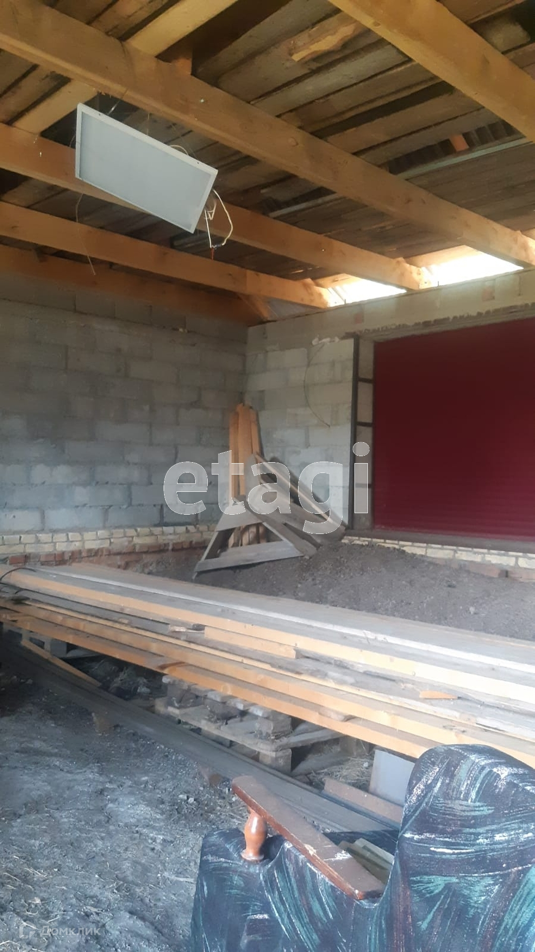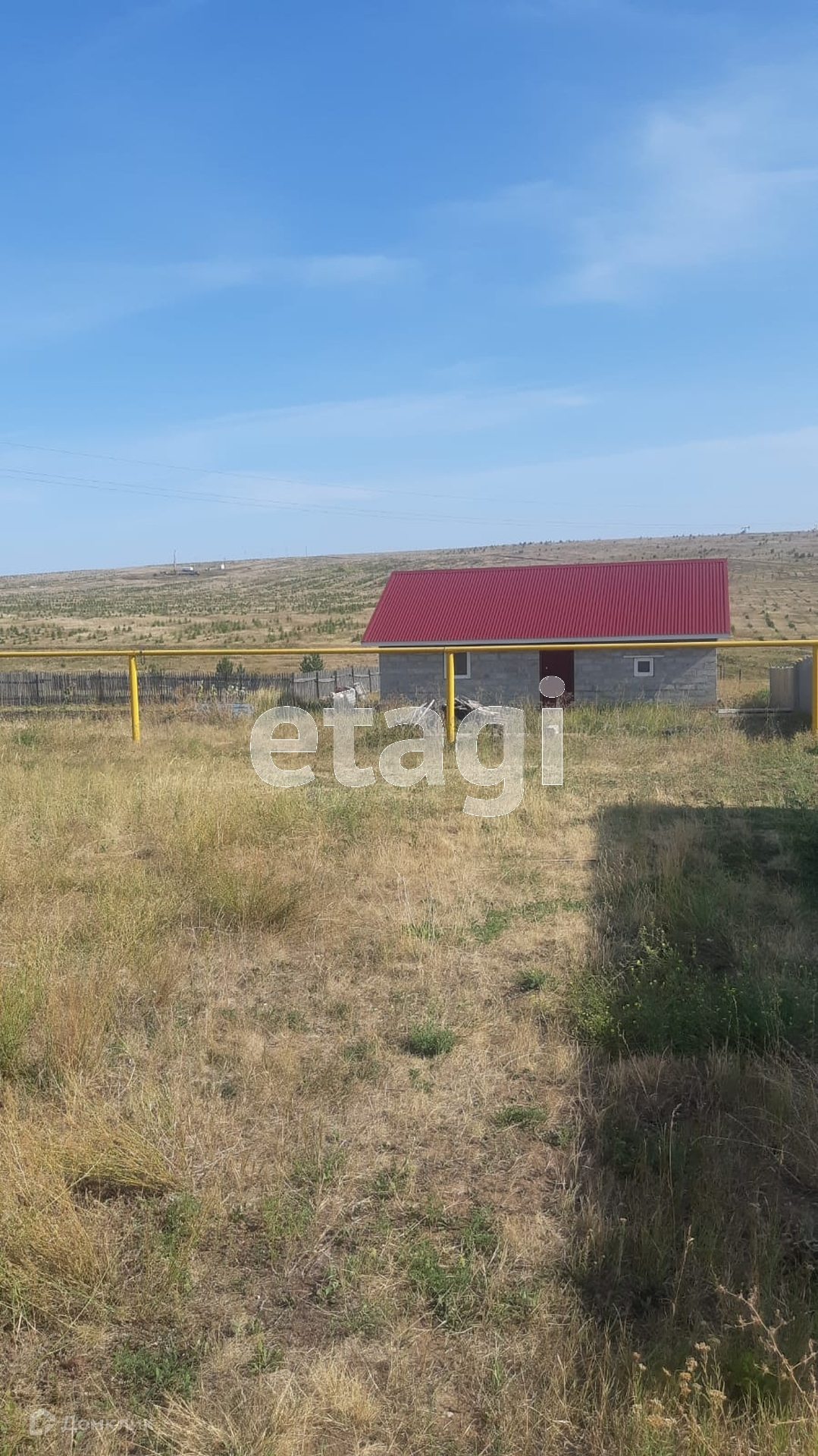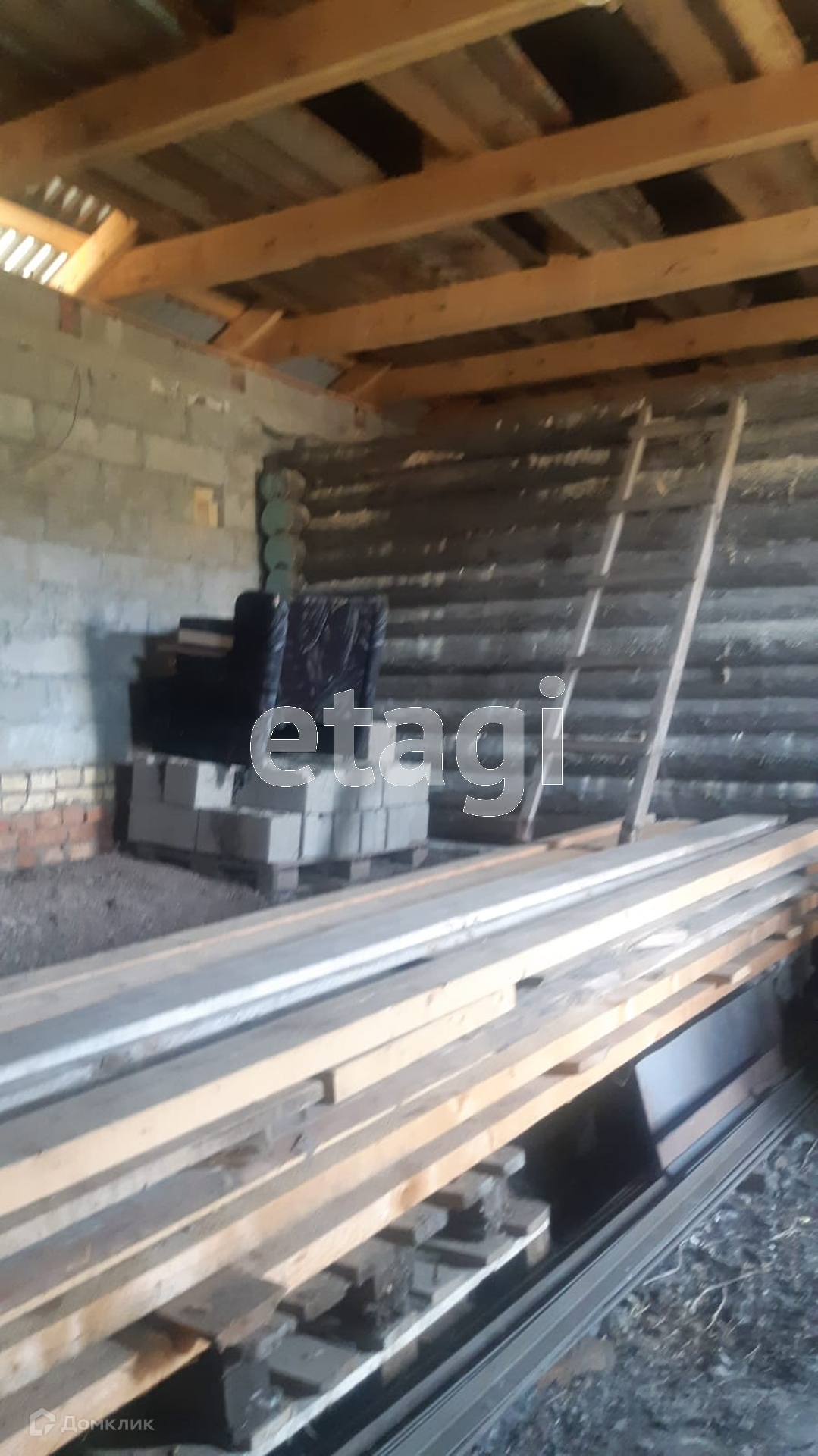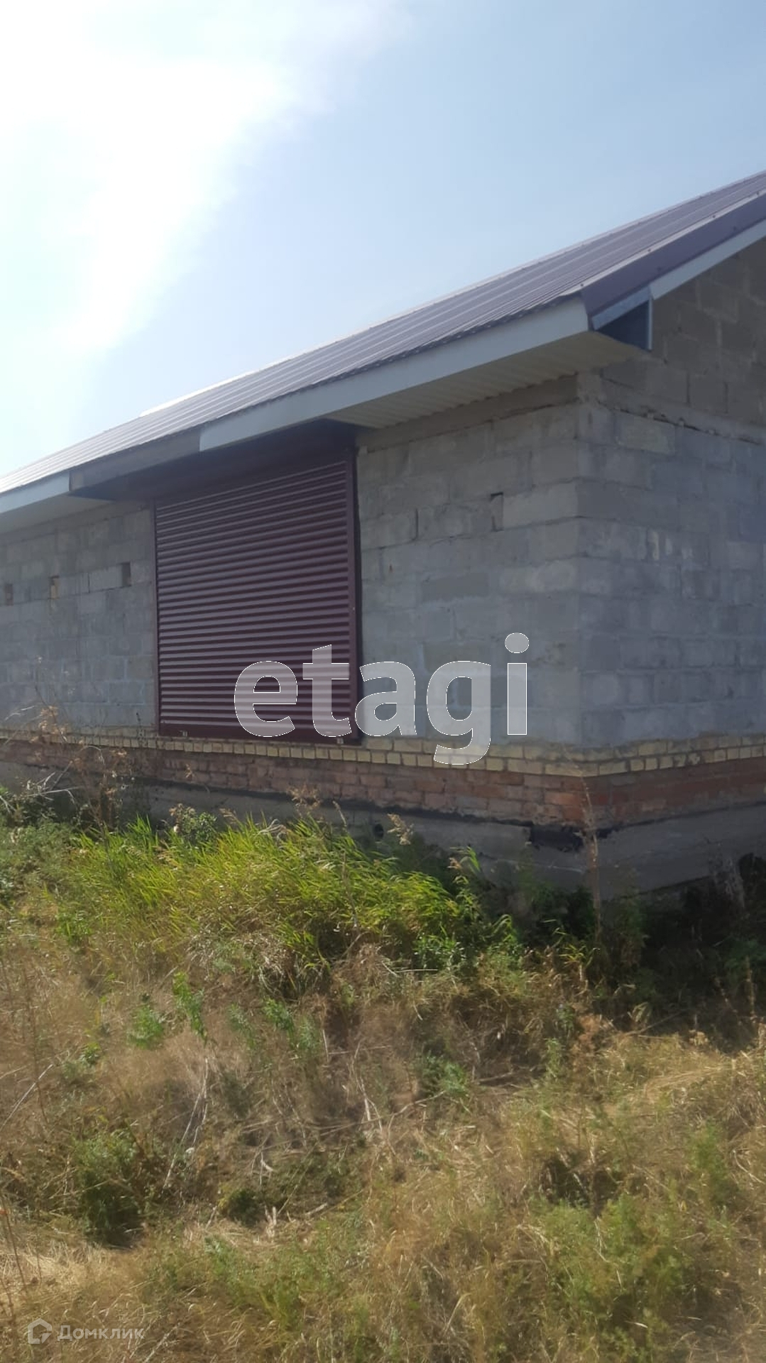 На участке стоит небольшой недостроенный блочный домик.