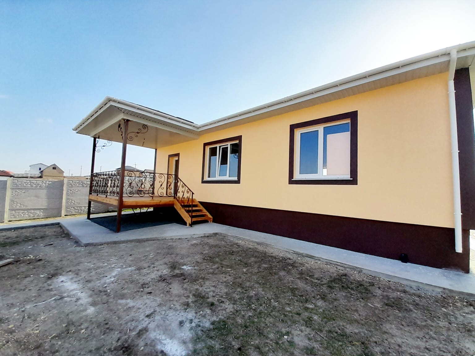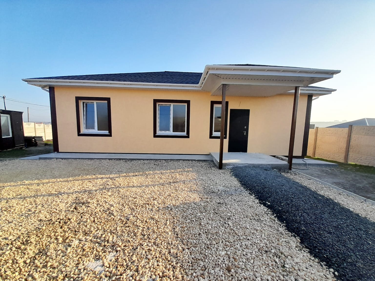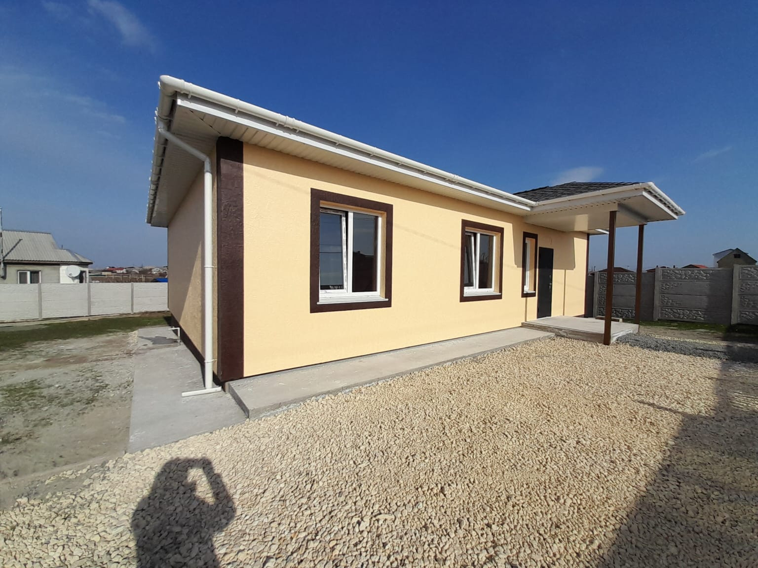 Продам дом , размещённый на участке 7 соток, с удобной планировкой: три раздельные спальни;  кухня - студия  (совмещенная с гостиной), большой санузел. Открытая терраса на заднем дворе с  видом на город и горы! Отделка предчистовая: для воплощения дизайна вашей мечты! Свет, вода подключены и заведены в дом. Газ проходит рядом с участком. Выгребная яма на 8 м.куб. Участок угловой,  полностью огорожен евро забором и оснащён элетрооткатными воротами.