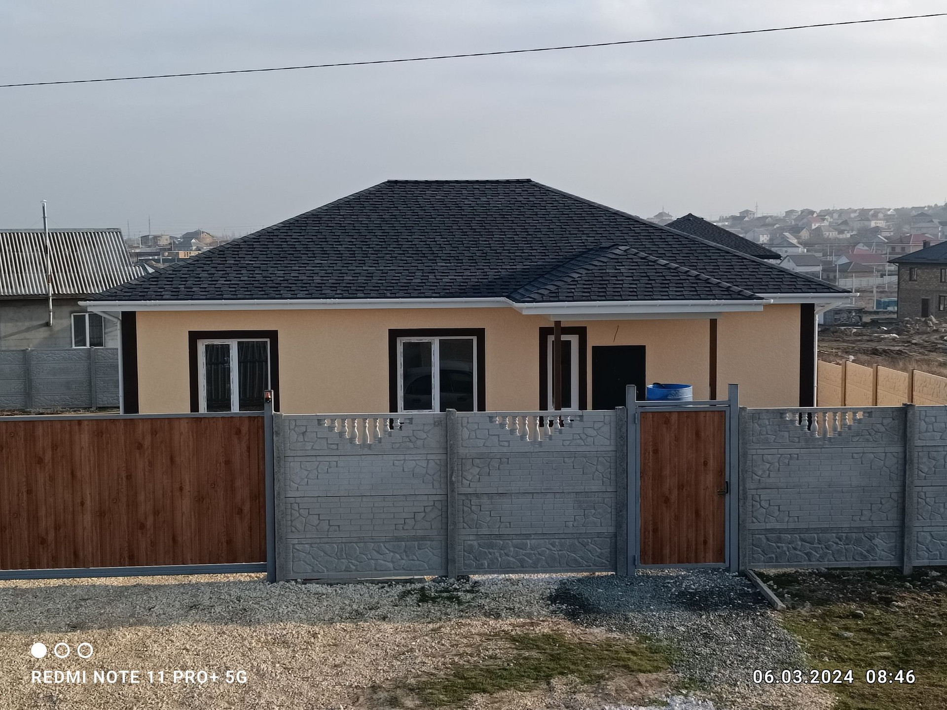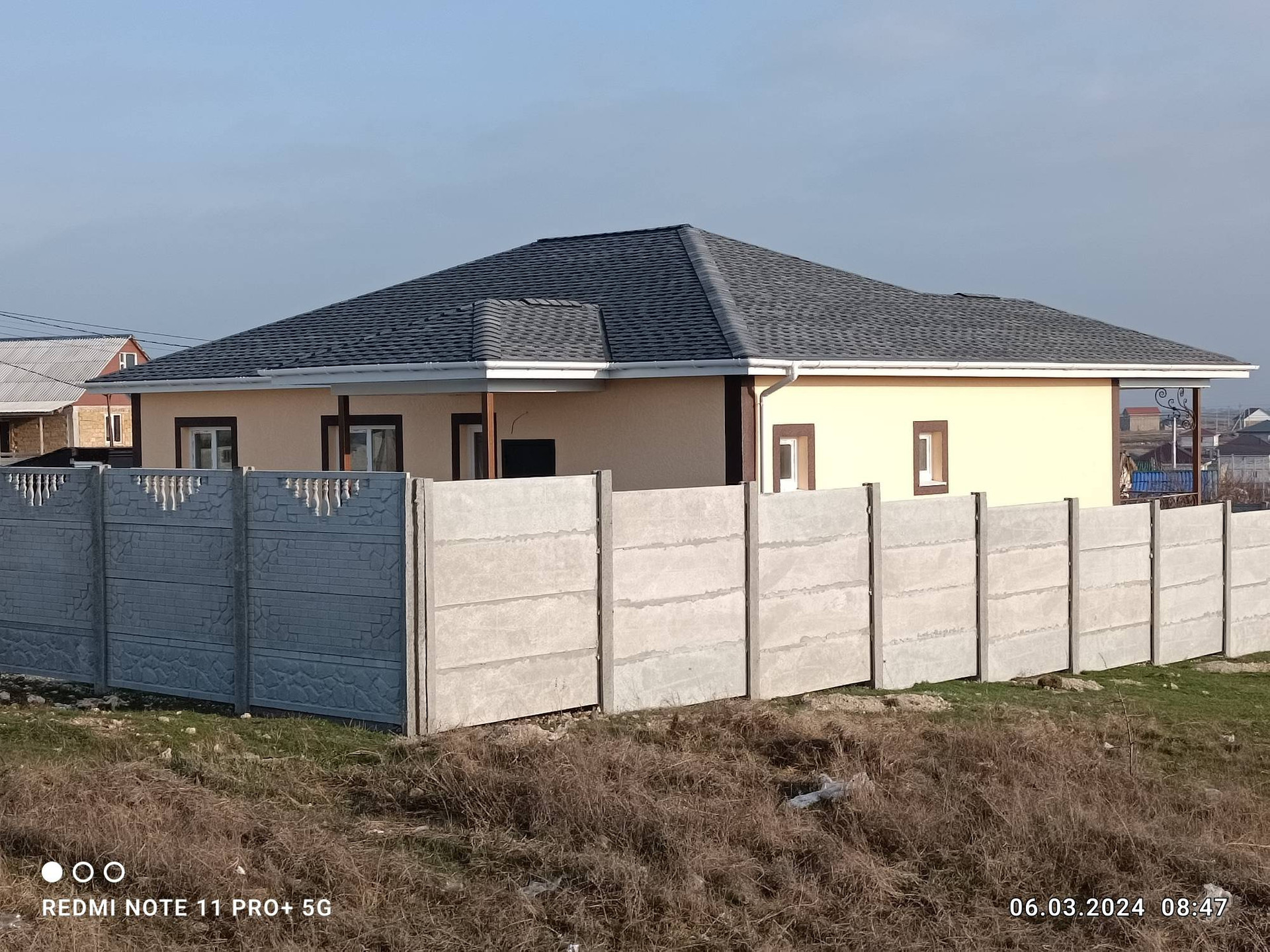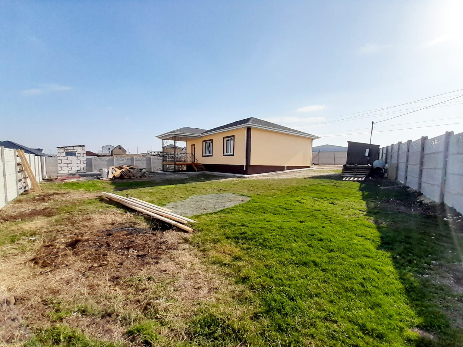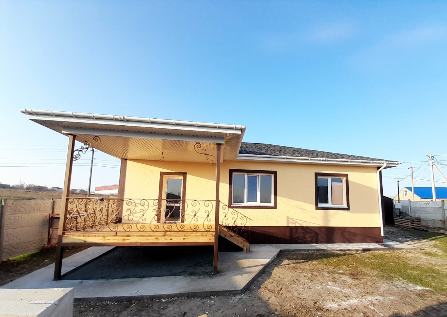 Продам дом , размещённый на участке 7 соток, с удобной планировкой: три раздельные спальни;  кухня - студия  (совмещенная с гостиной), большой санузел. Открытая терраса на заднем дворе с  видом на город и горы! Отделка предчистовая: для воплощения дизайна вашей мечты! Свет, вода подключены и заведены в дом. Газ проходит рядом с участком. Выгребная яма на 8 м.куб. Участок угловой,  полностью огорожен евро забором и оснащён элетрооткатными воротами.