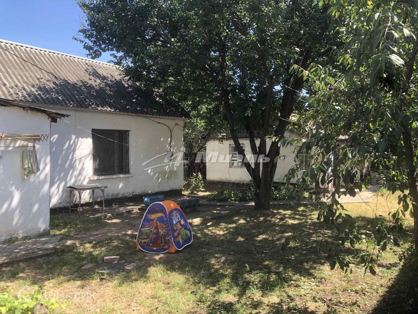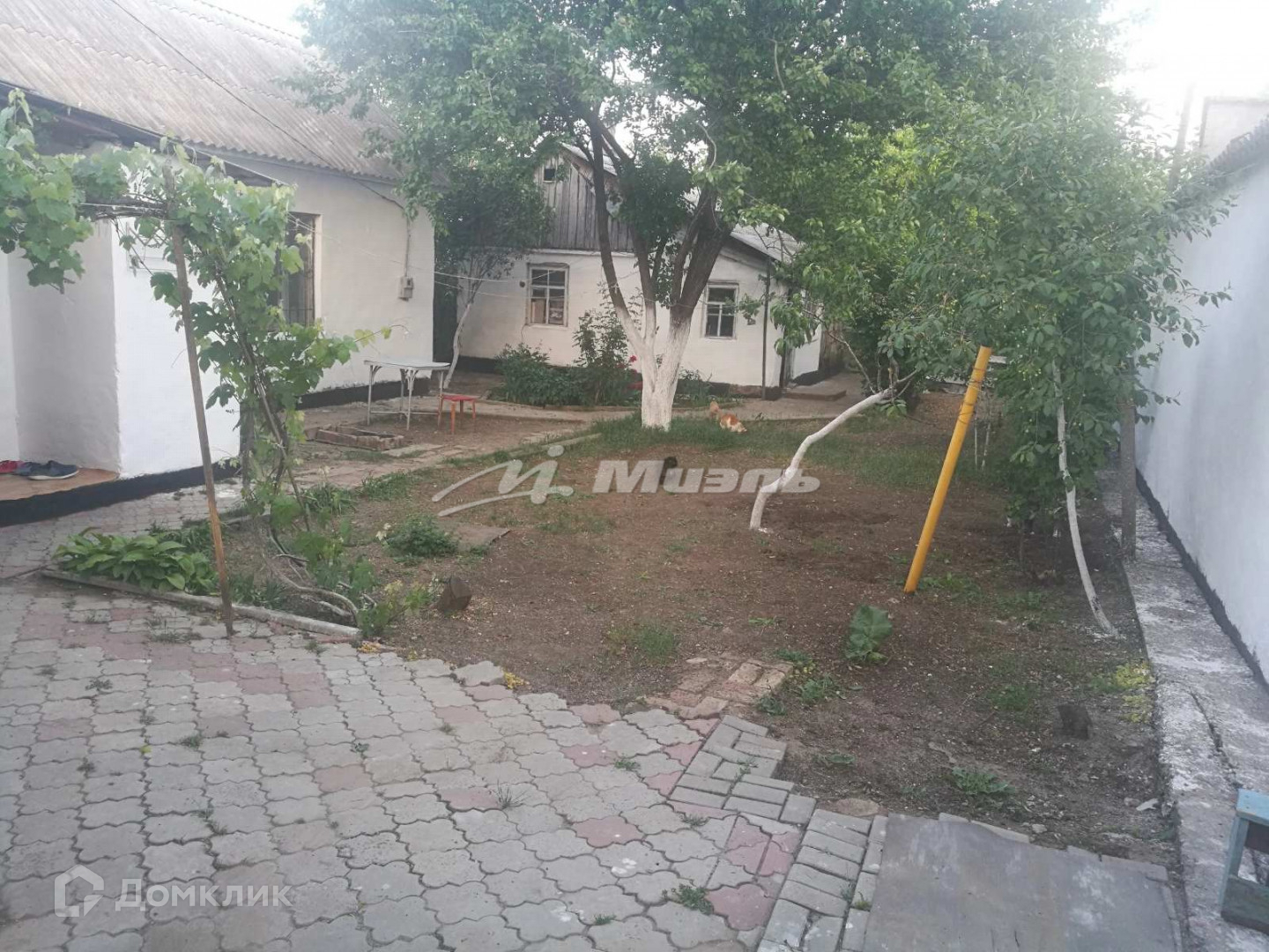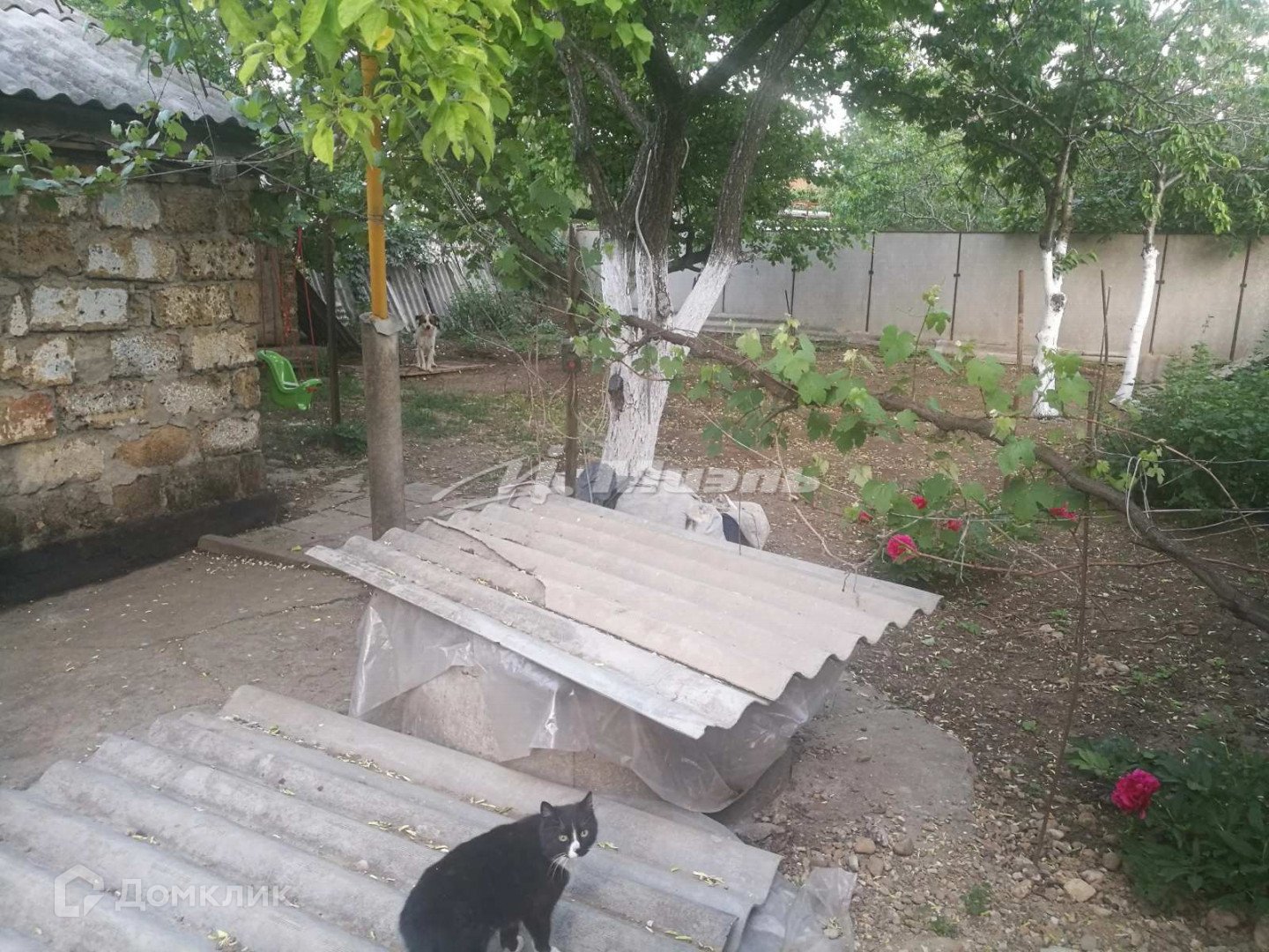 Есть садовые деревья, детская песочница, есть место для парковки нескольких автомобилей во дворе.