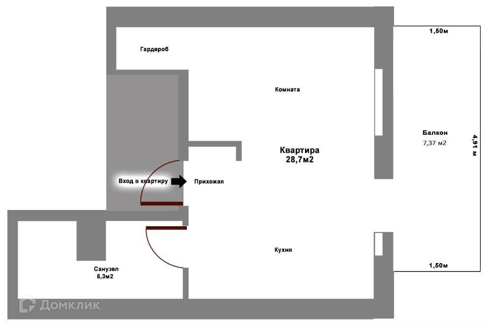 Площадь кухни 6.3 м2