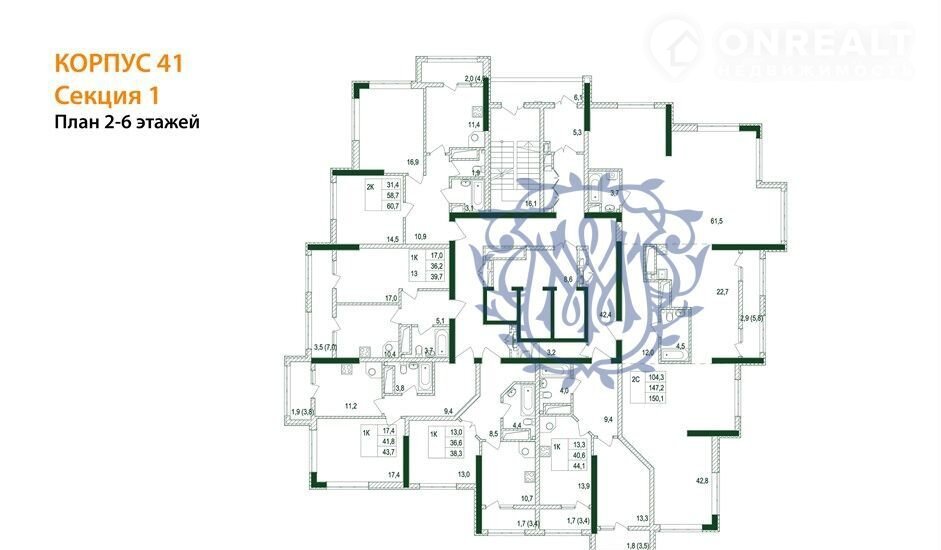 Квартира: 2 к 150,10 кв.м., 2 этаж в комплексе Жигулина роща, 3 очередь, корп.41, сдача: 1кв. , этажей: 22, адрес Мирное село, д. блок-секция 41, Застройщик: СКГ.