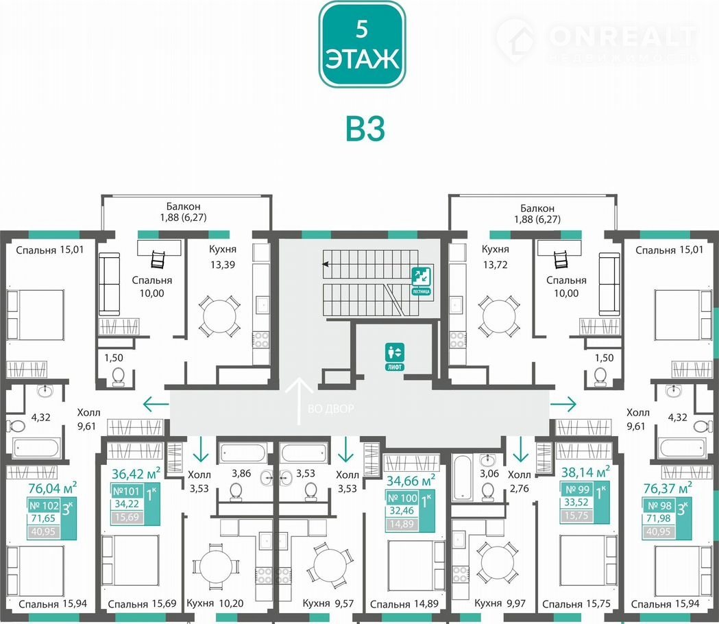 Квартал состоит из 14 секций, этажность каждой секции – 9
