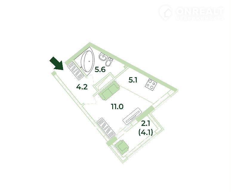 Общая площадь 28 м2