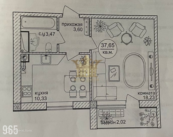 Общая площадь 37.7 м2