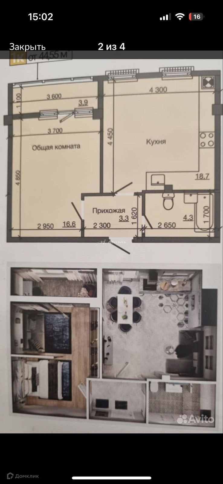Общая площадь 44.65 м2