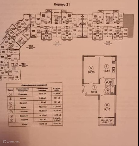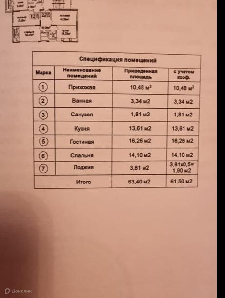 Общая площадь 61 м2